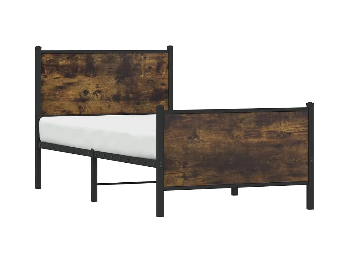 Lit adulte en métal avec tête de lit chêne fumé 75x190 cm FR788394