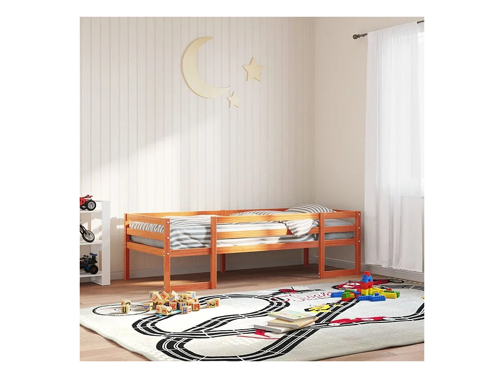 Lit adulte pour enfants brun cire 80x200cm bois de pin massif FR72094