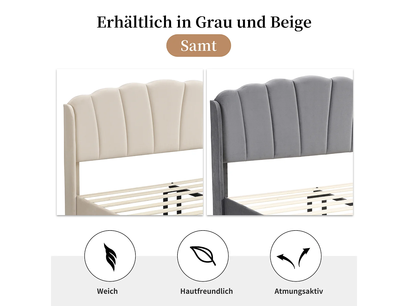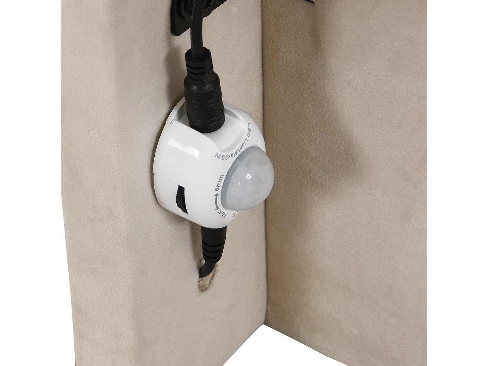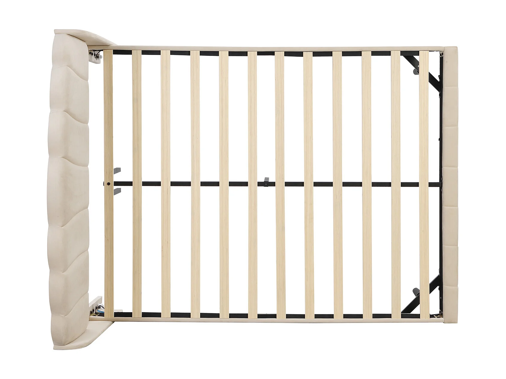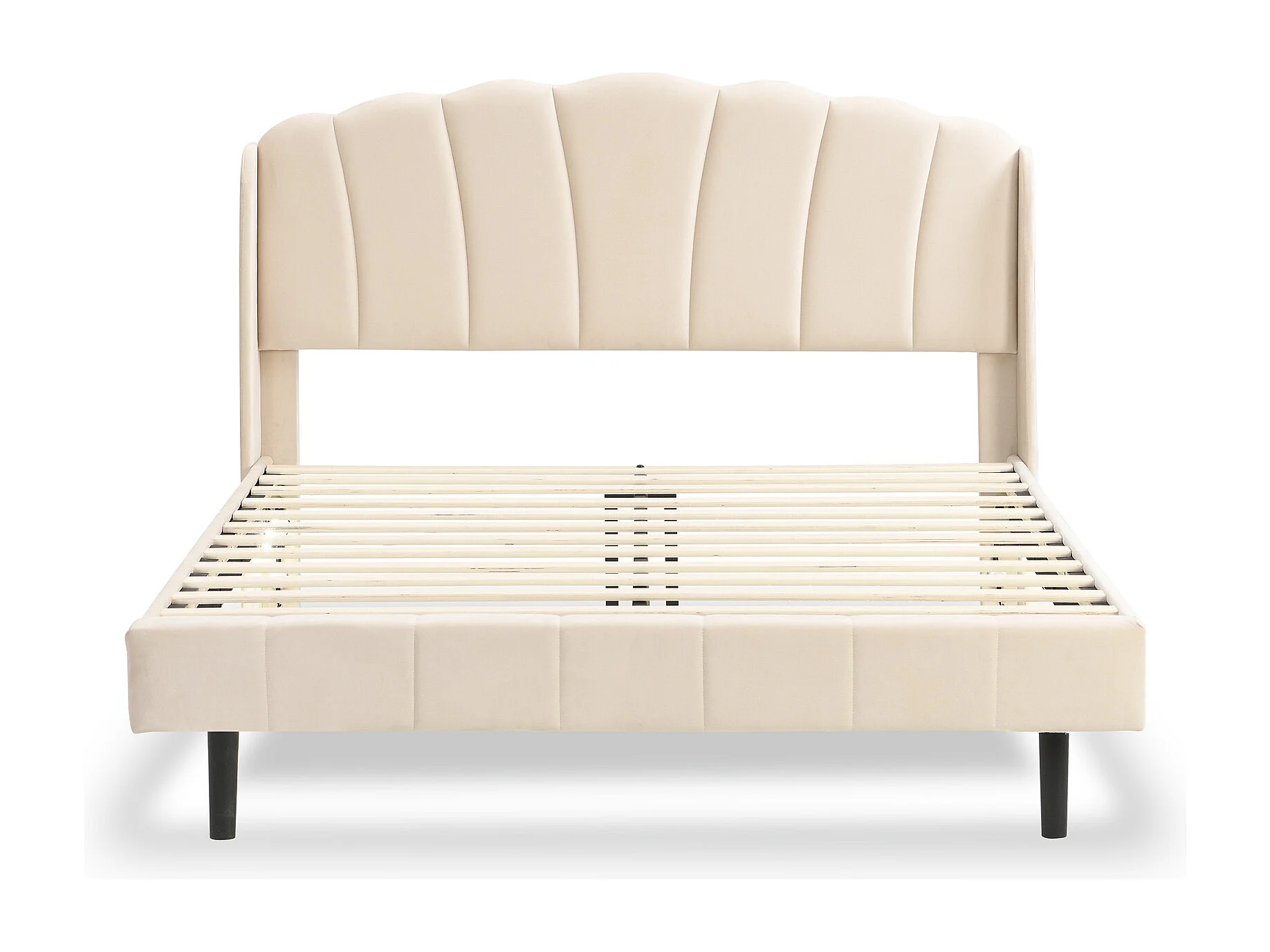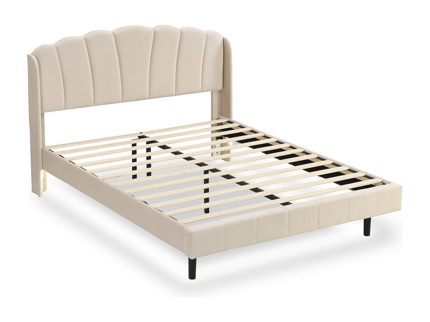 Lit adulte rembourré, avec lampes LED sensibles aux mouvements, sommier à lattes et tête de lit, beige 140x200cm