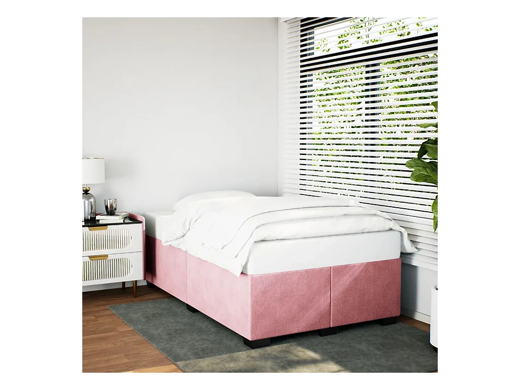 Sommier à lattes de lit avec matelas rose 120x190 cm velours