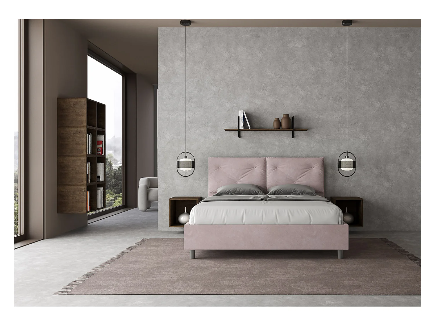 Lit avec sommier rembourré 160x190 microfibre lilas Appia