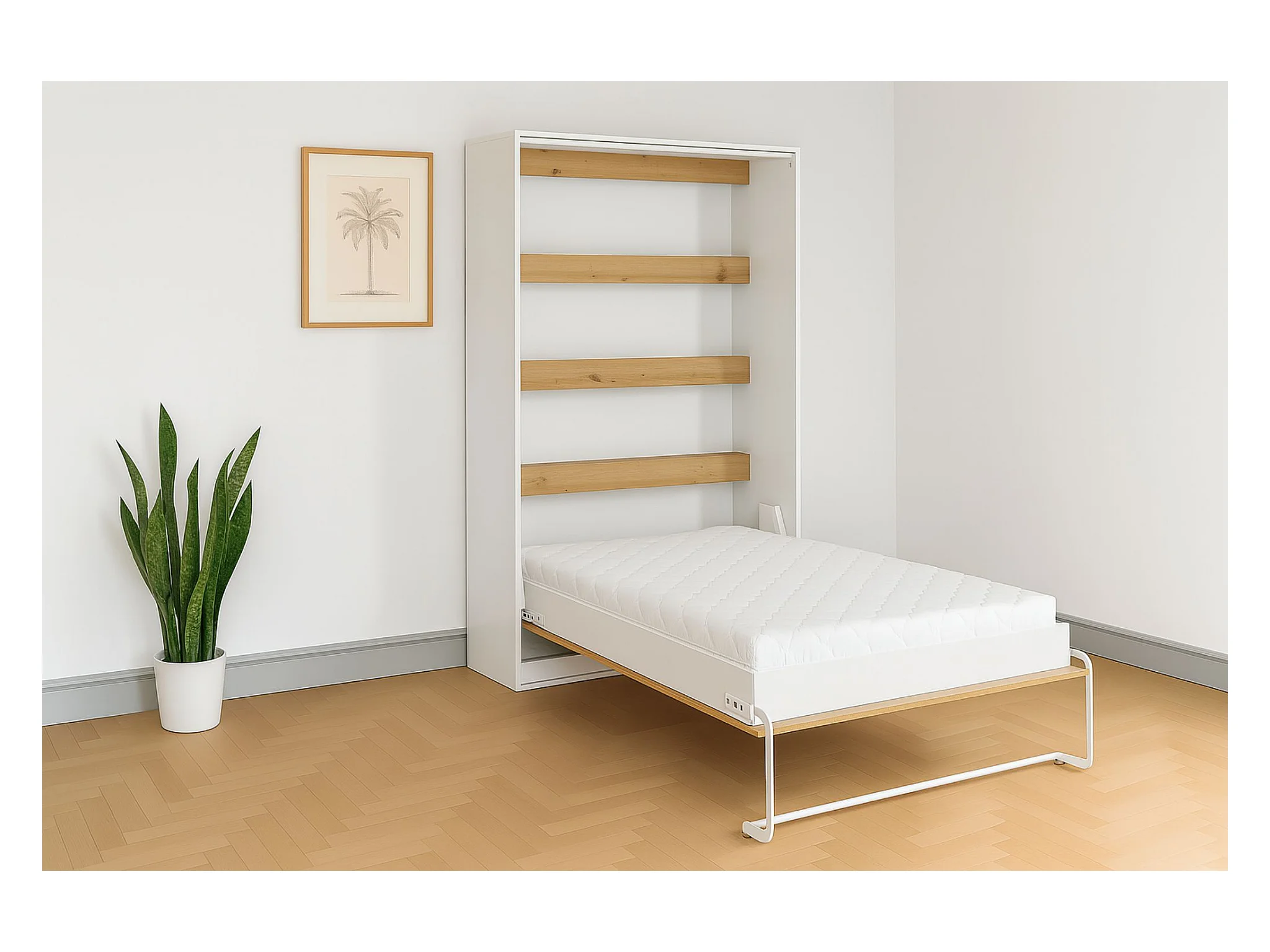 Lit armoire vertical parfait 120x200 qui allie design et fonctionnalité avec matelas en chêne + blanc