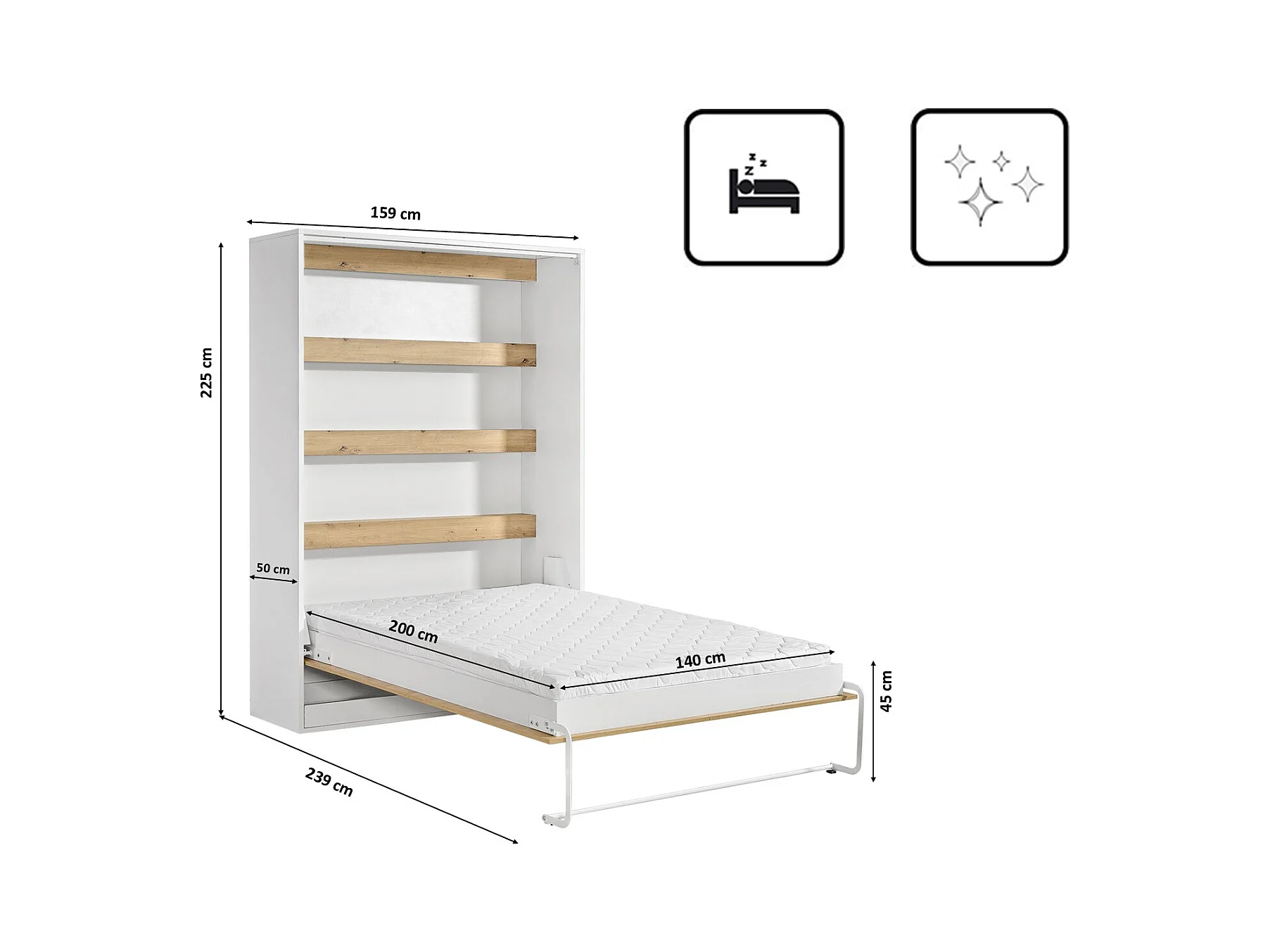 Lit armoire vertical parfait 140x200 qui allie design et fonctionnalité avec matelas en chêne + blanc