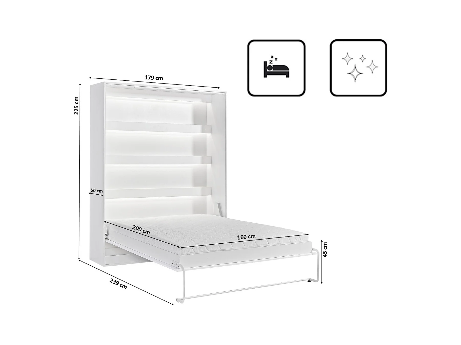 Lit armoire vertical parfait 160x200 qui allie design et fonctionnalité avec matelas blanc