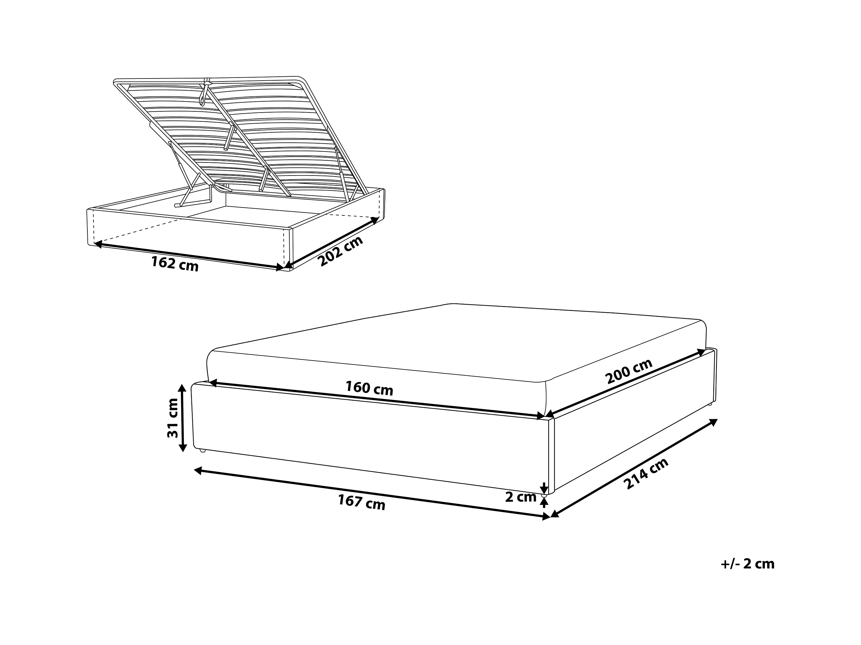 Lit ottoman sans tête de lit Tissu DINAN 160 x 200 cm Marron clair
