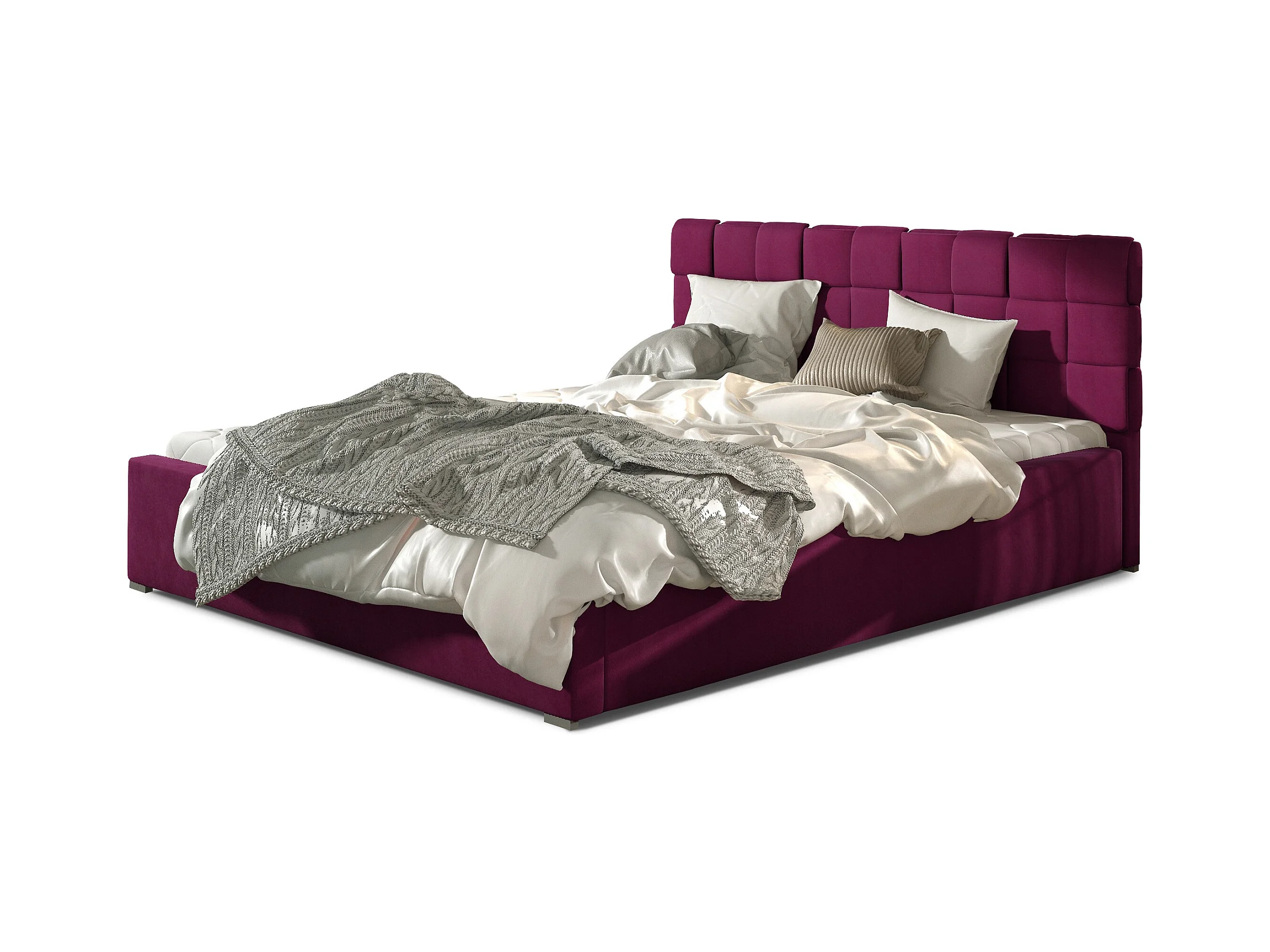 Lit double rembourré en velours Clarin-Couleur Magenta foncé-160x200-Version avec sommier