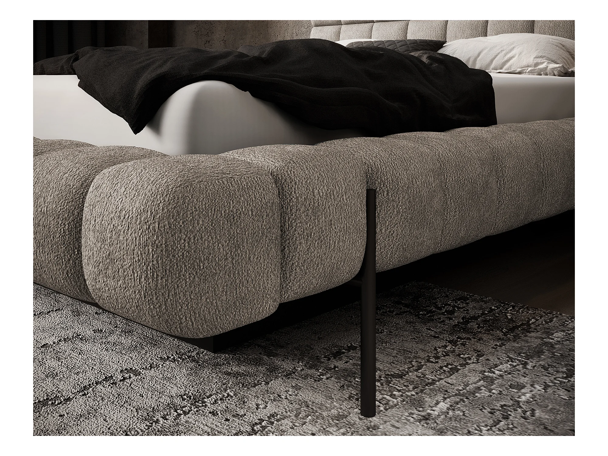 Lit double rembourré en tissu Clarin-Couleur Beige-180x200-Version avec sommier