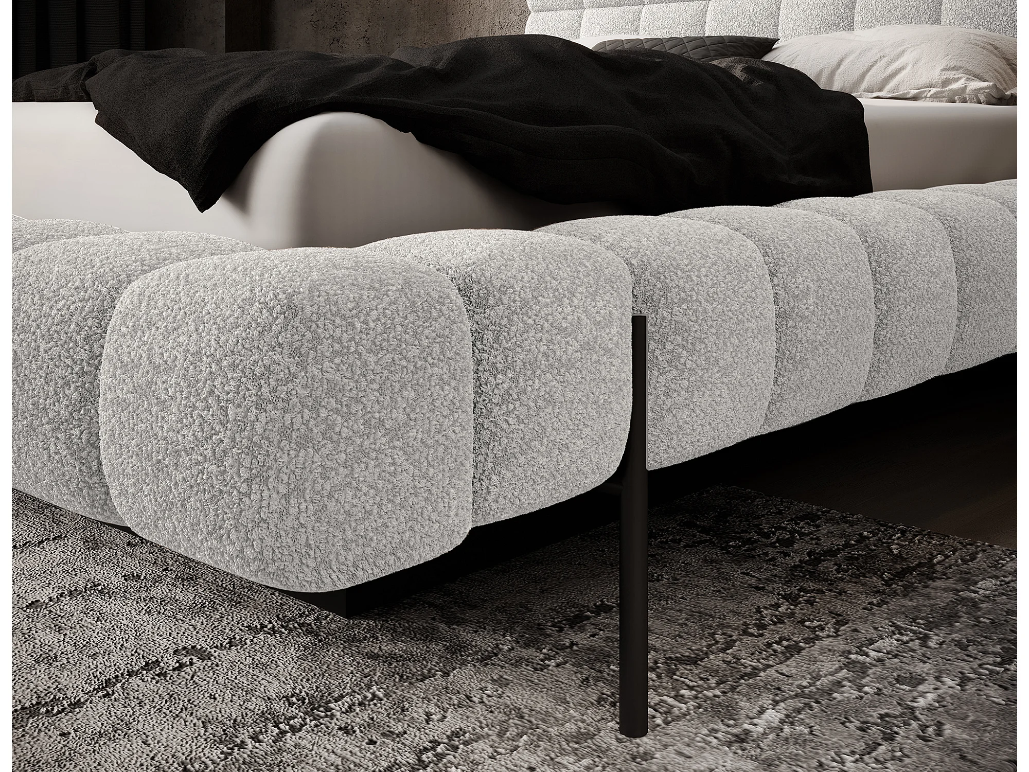 Lit coffre design avec capitonnage tissu à bouclettes Kaizer-Couleur Blanc-140x200