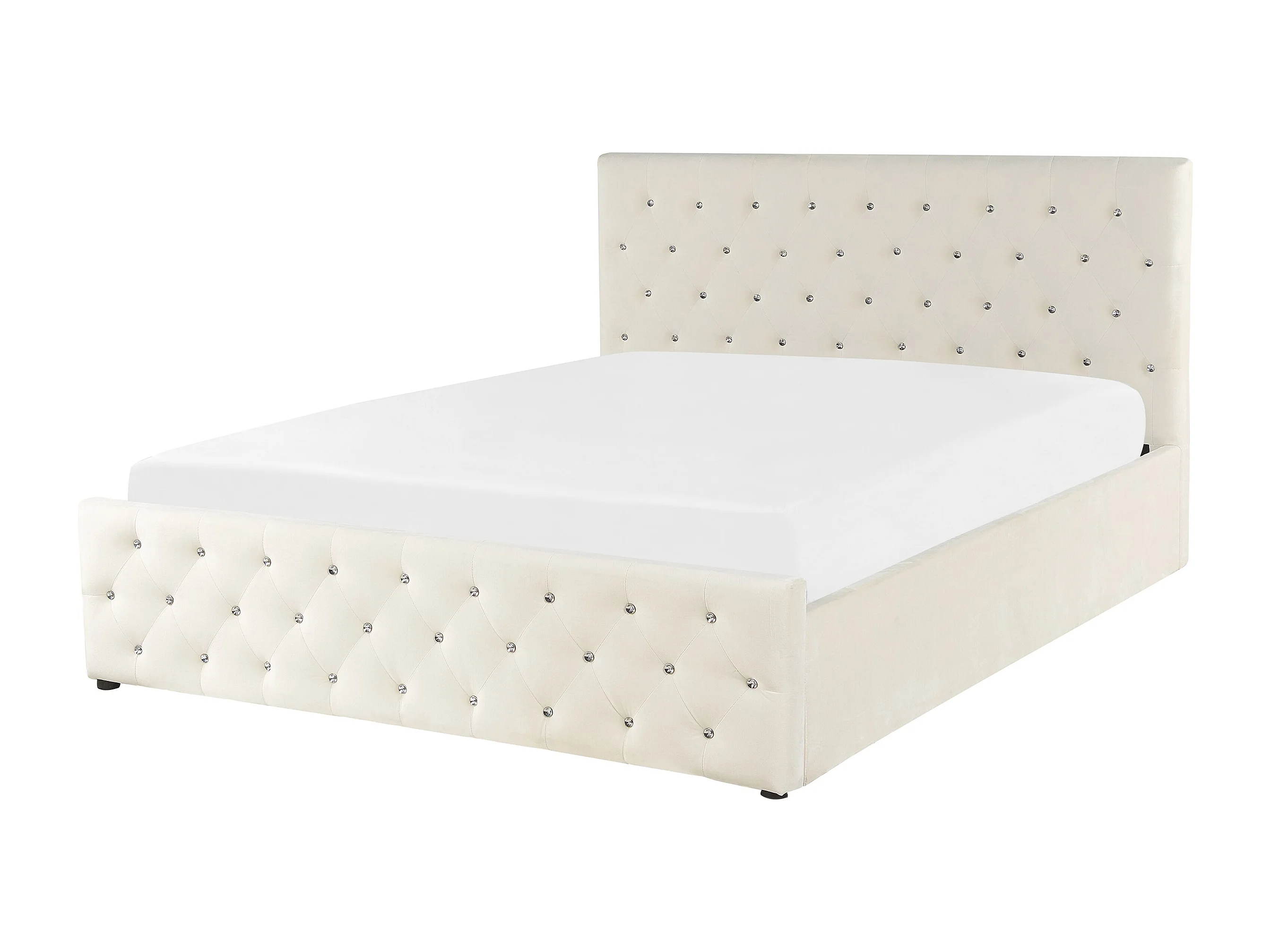 Lit ottoman Velours AMIENS 140 x 200 cm Beige clair