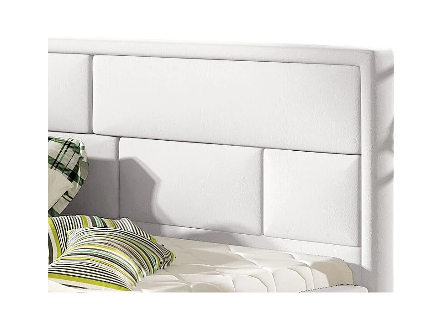 Lit avec coffre simili cuir blanc tête de lit capitonnée Lenzo - 4 tailles-200x200
