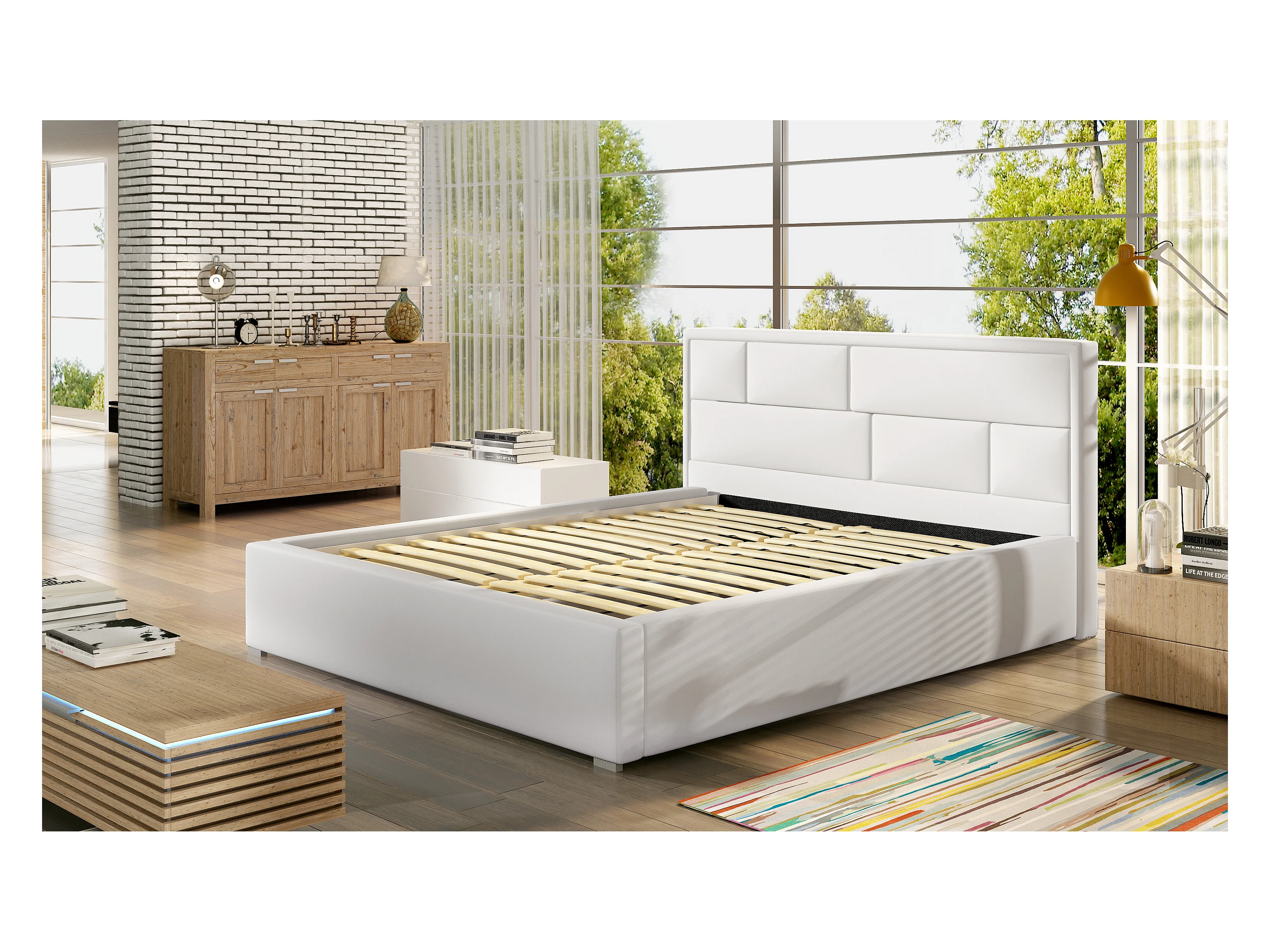 Lit double rembourré en simili cuir Clarin-Couleur Blanc-200x200-Version coffre de rangement