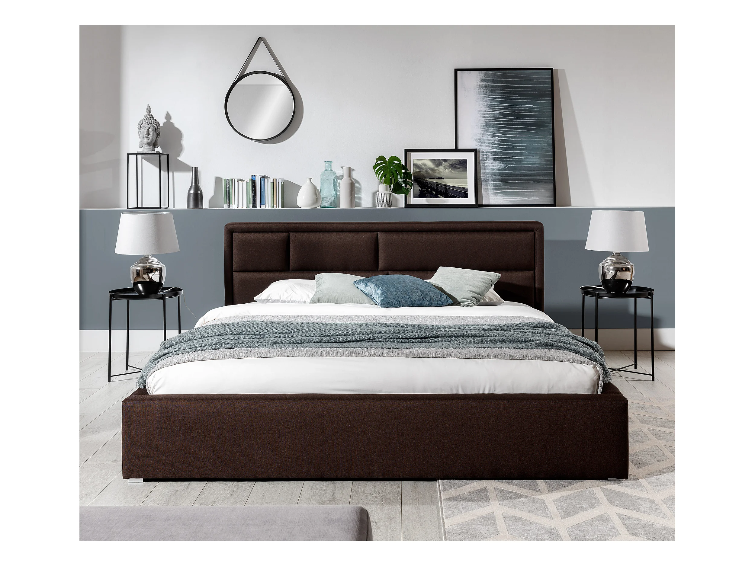 Lit avec coffre de rangement 200x200 capitonné simili cuir blanc Kandy