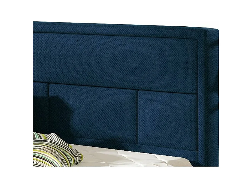 Lit avec coffre velours bleu tête de lit capitonnée Lenzo - 4 tailles-180x200