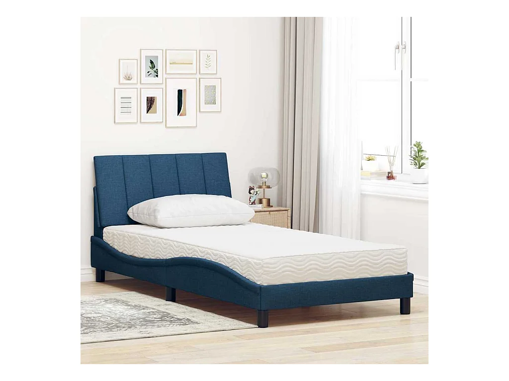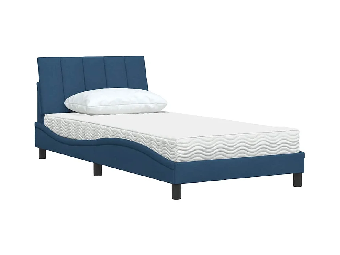 Cadre de lit avec matelas avec matelas Bleu 100 x 200 cm tissu