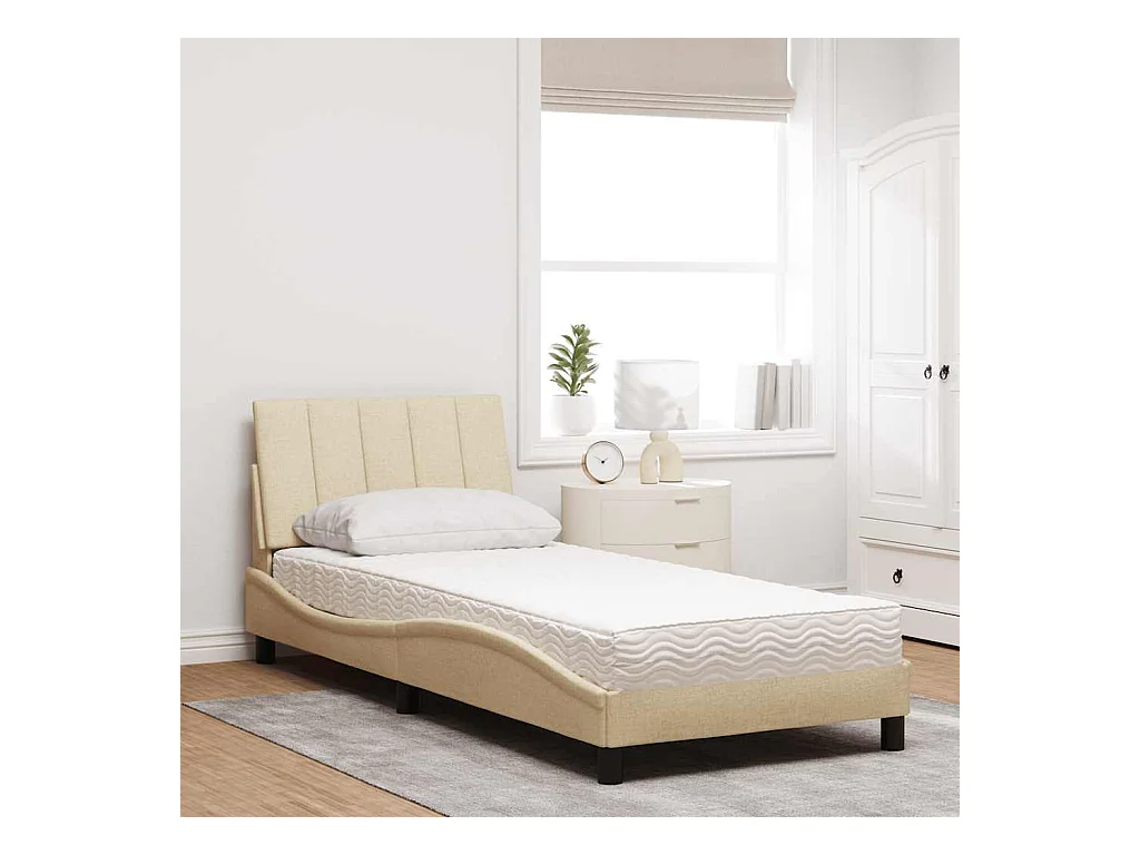 Sommier à lattes de lit et matelas Crème 90x190 cm Tissu