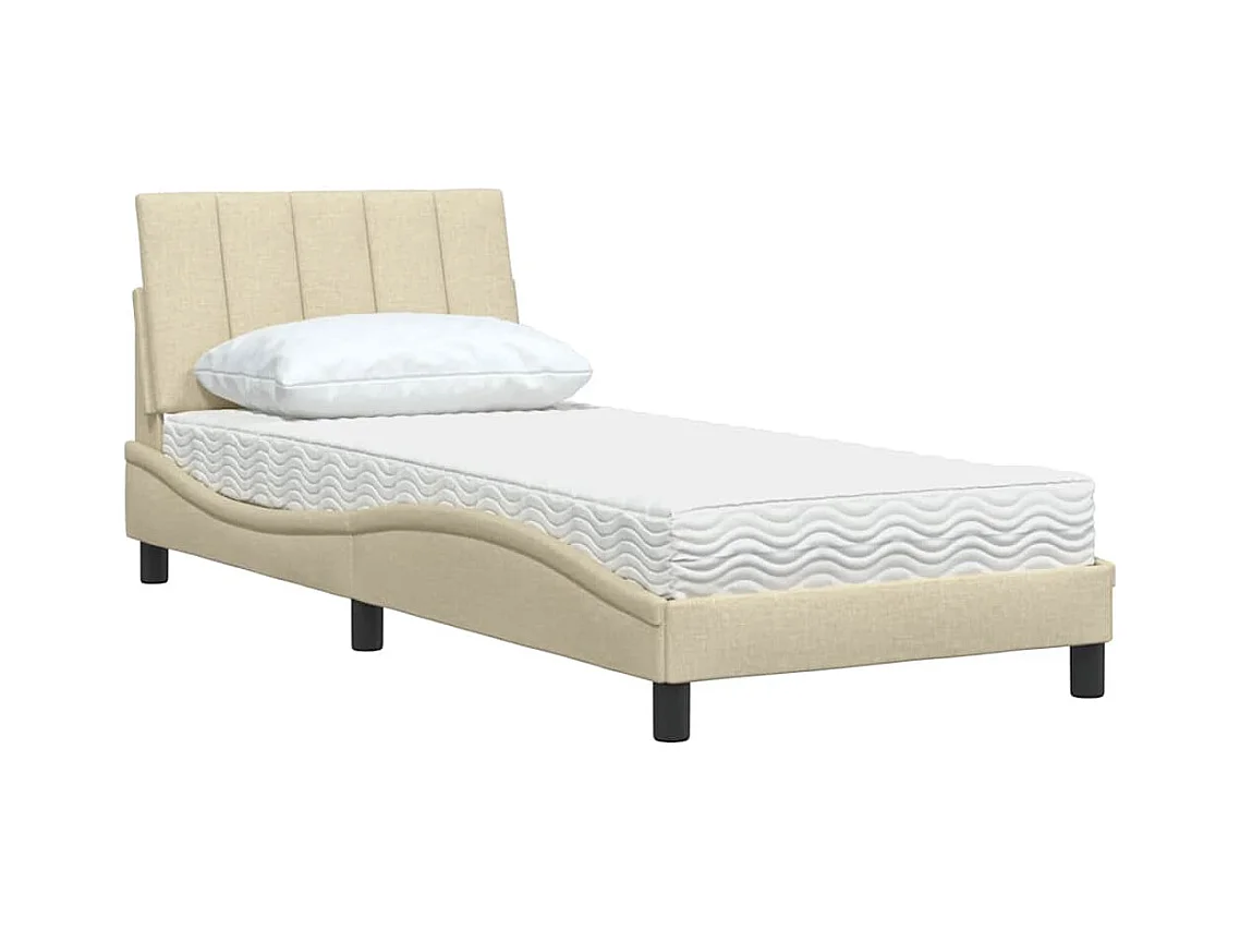 Cadre de lit ottoman avec matelas crème 90x190 cm tissu