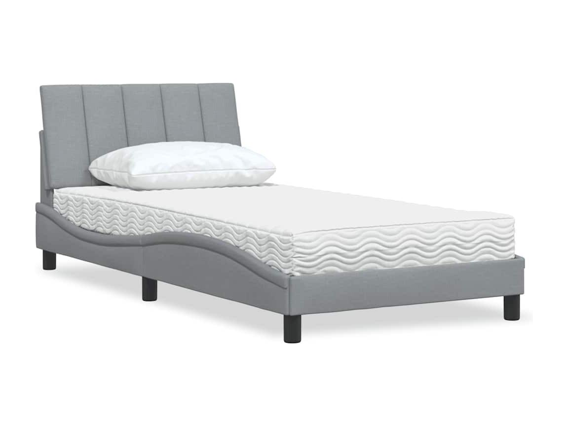 Cadre de lit avec matelas Gris clair 100 x 200 cm tissu