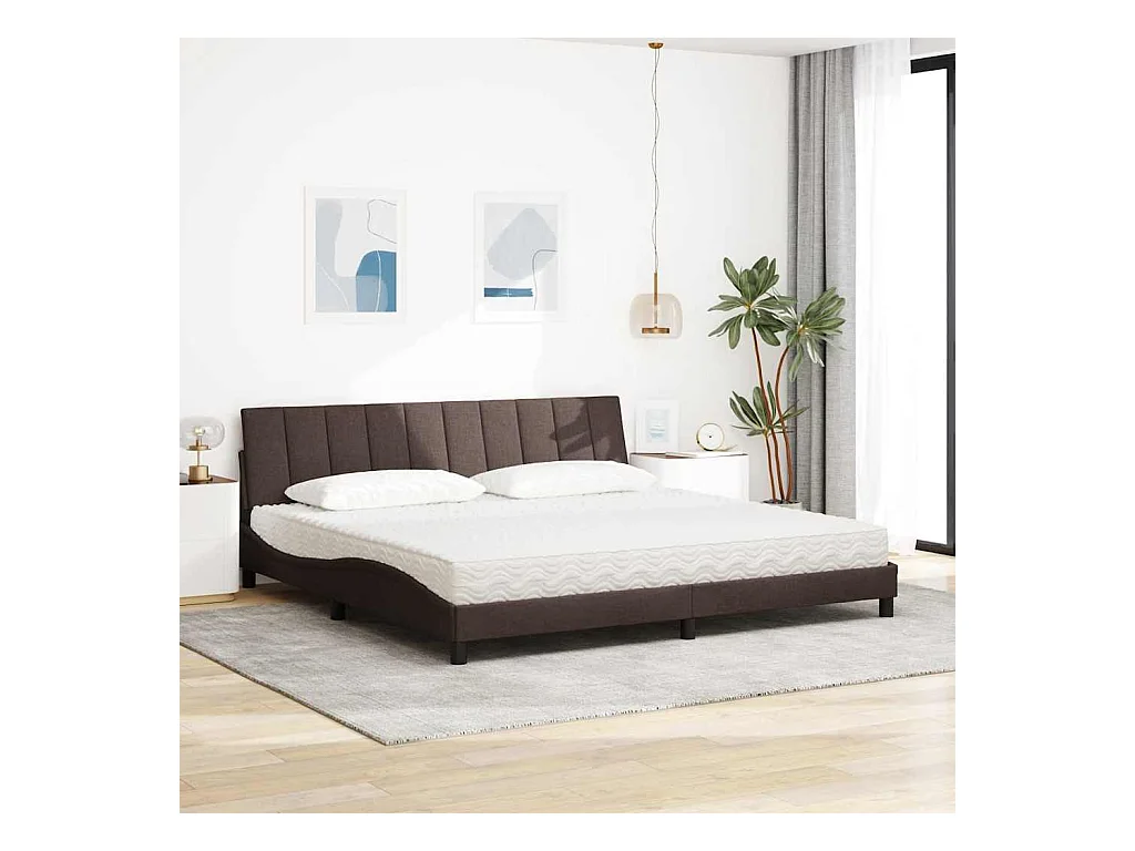 Lit avec matelas marron foncé 200x200 cm tissu