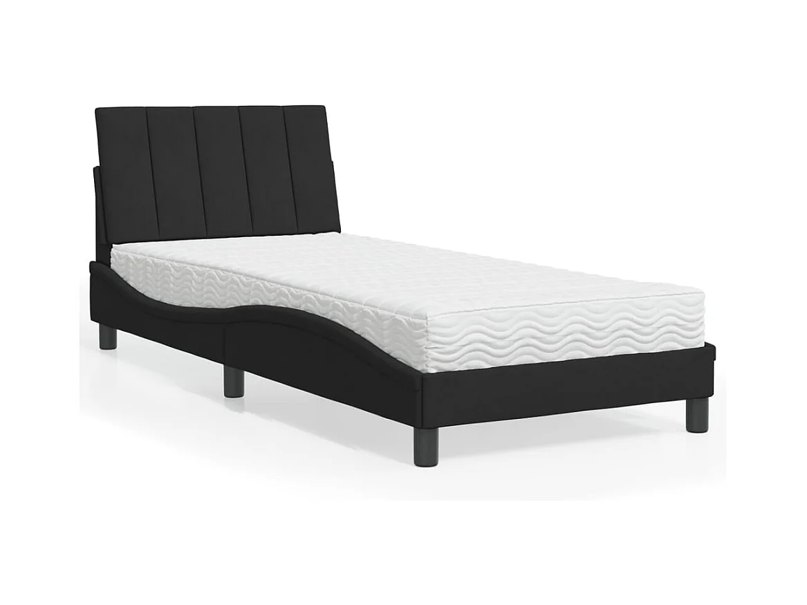 Lit avec matelas noir 90x190 cm velours