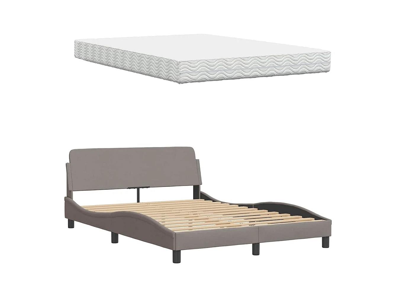 Cadre de lit avec matelas Taupe 120 x 200 cm tissu