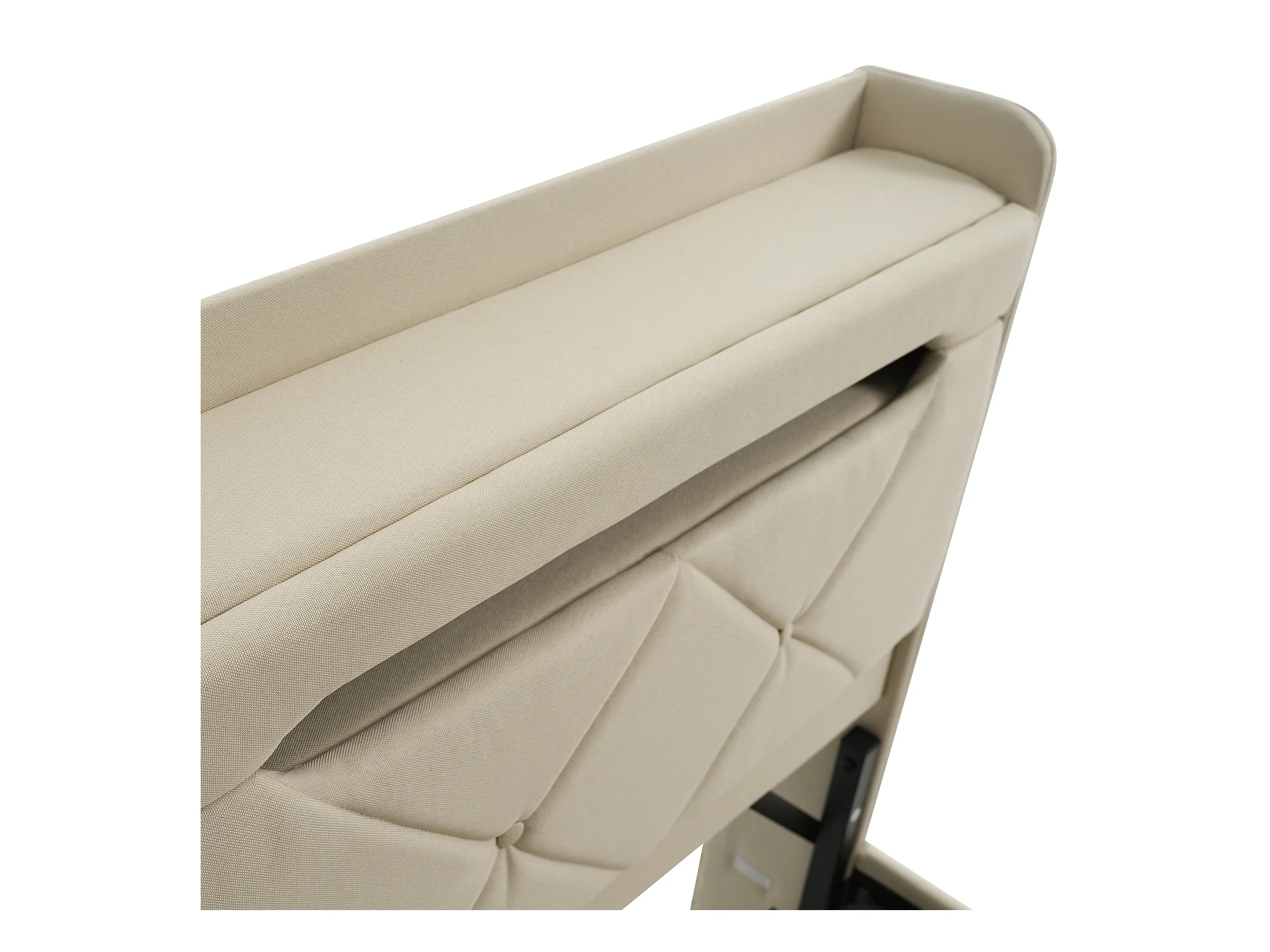 Lit coffre rembourré 90x200 cm - avec chargement sans fil et tête de rangement - tissu en lin - Beige