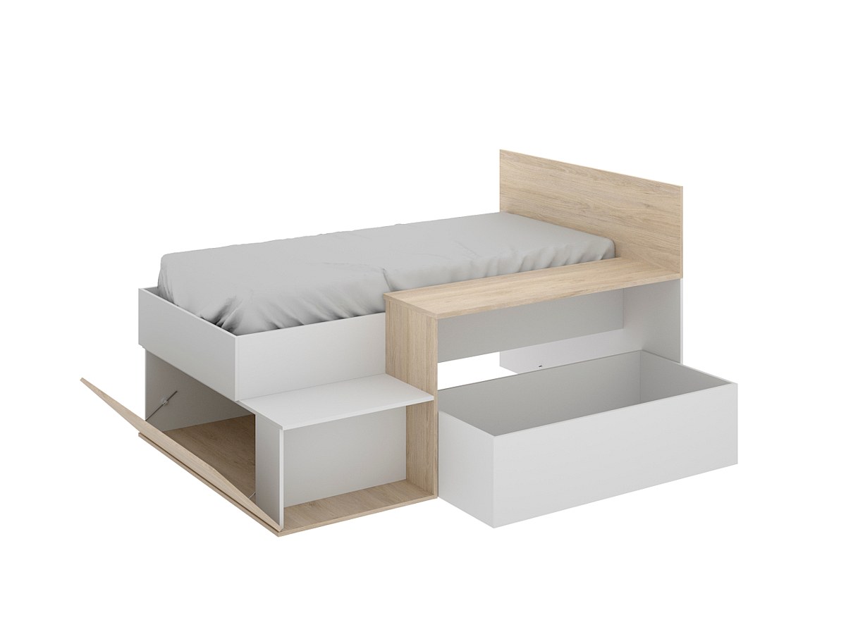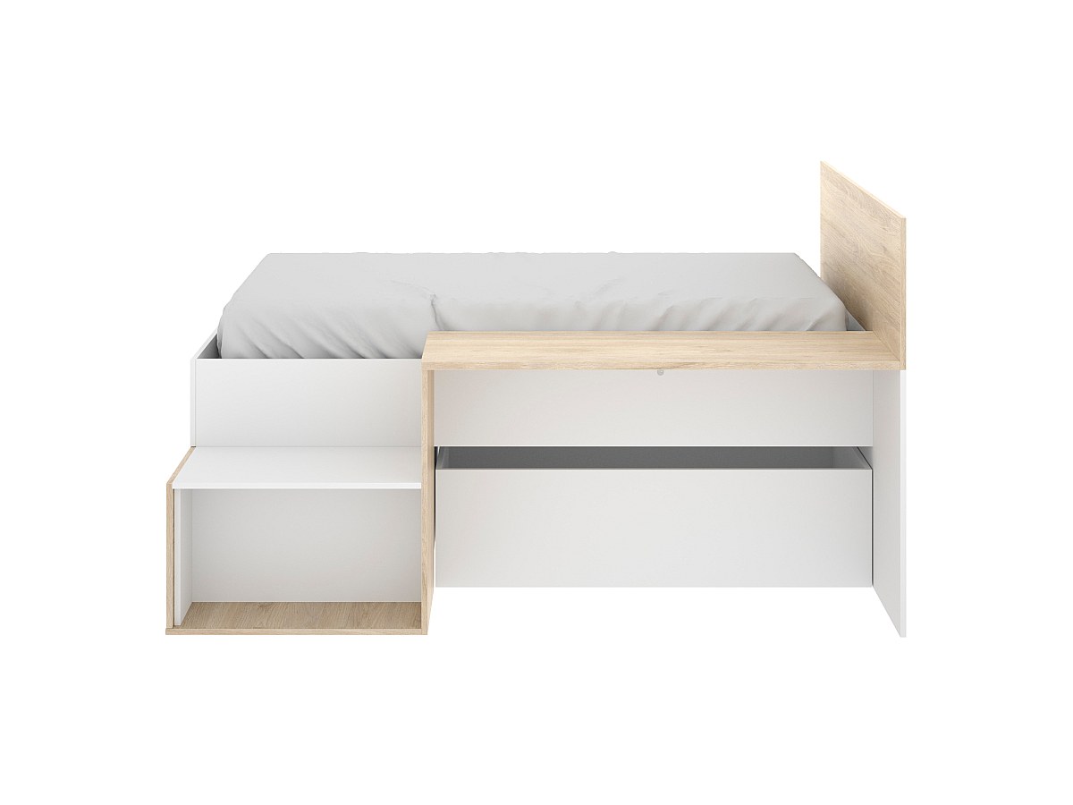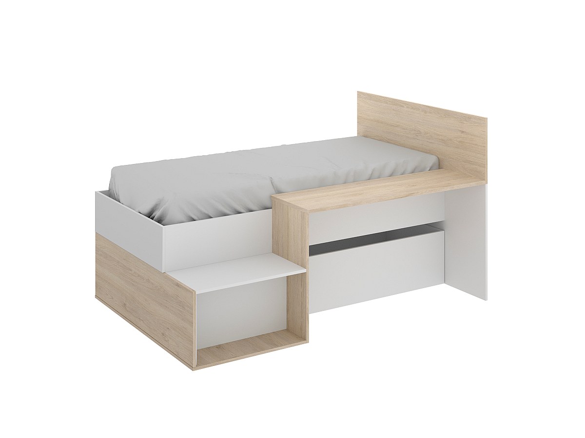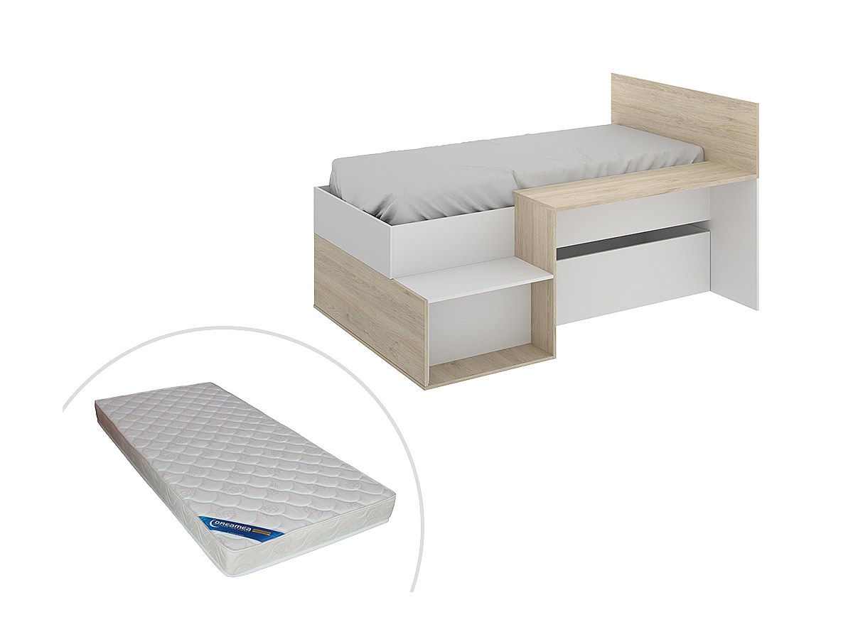 Lit avec rangements et bureau LISON - 90 x 190 cm - Coloris : blanc et chêne + Matelas