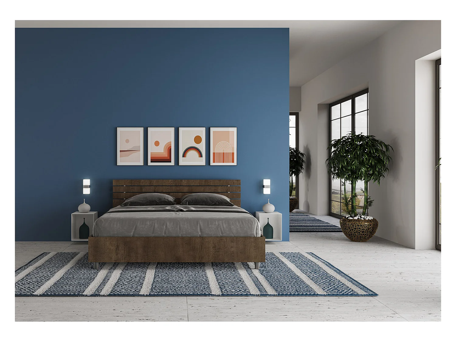 Lit avec sommier 160x190 tête de lit droite avec des lames noyer Ankel