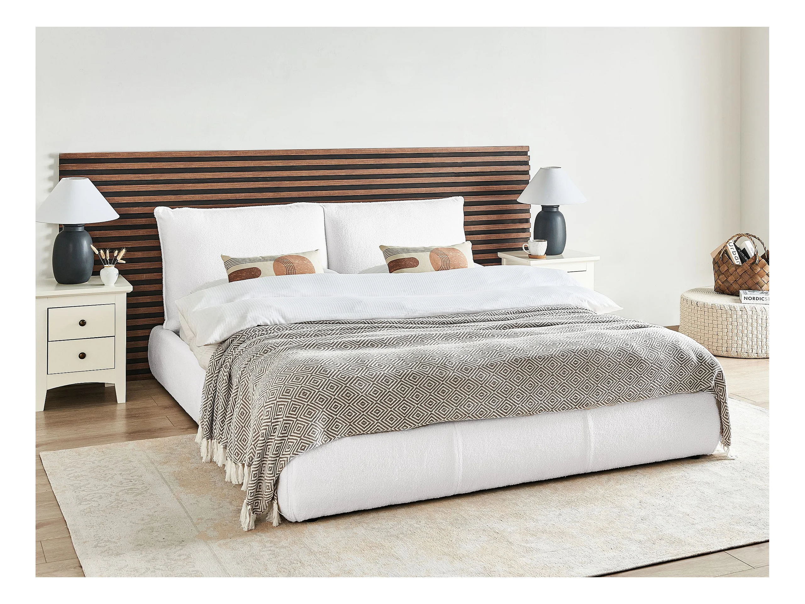 Lit avec sommier Bouclé LINARDS 160 x 200 cm Blanc