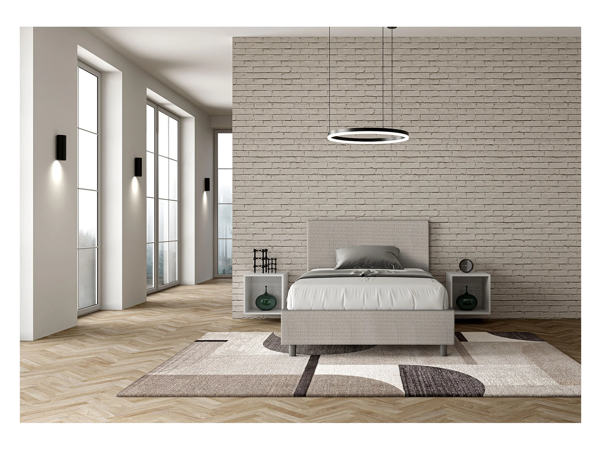 Lit 1 place et demi avec sommier rembourré 120x210 tissu Labirinto 1 blanc Adele