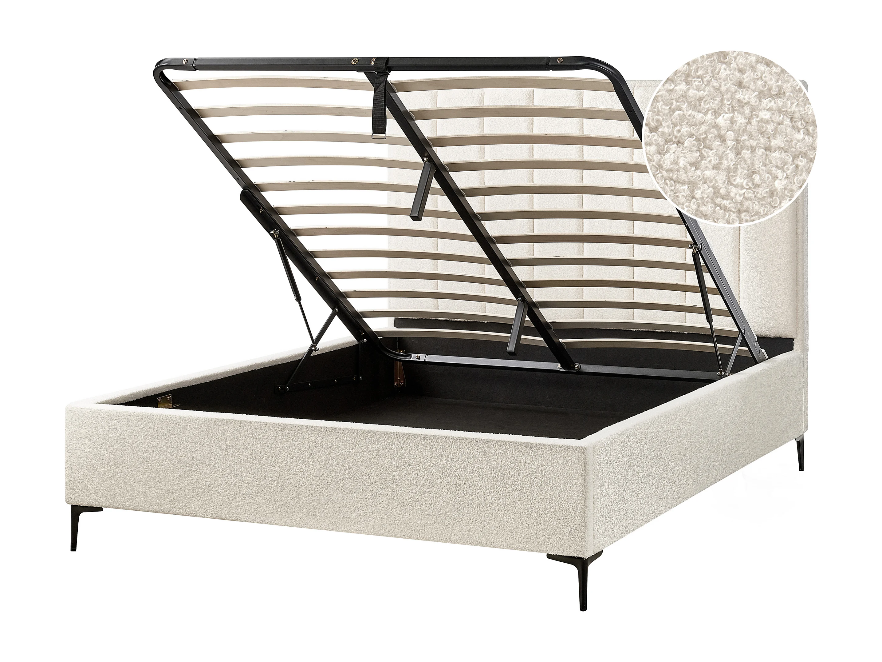 Lit ottoman Bouclé SEZANNE 160 x 200 cm Blanc cassé
