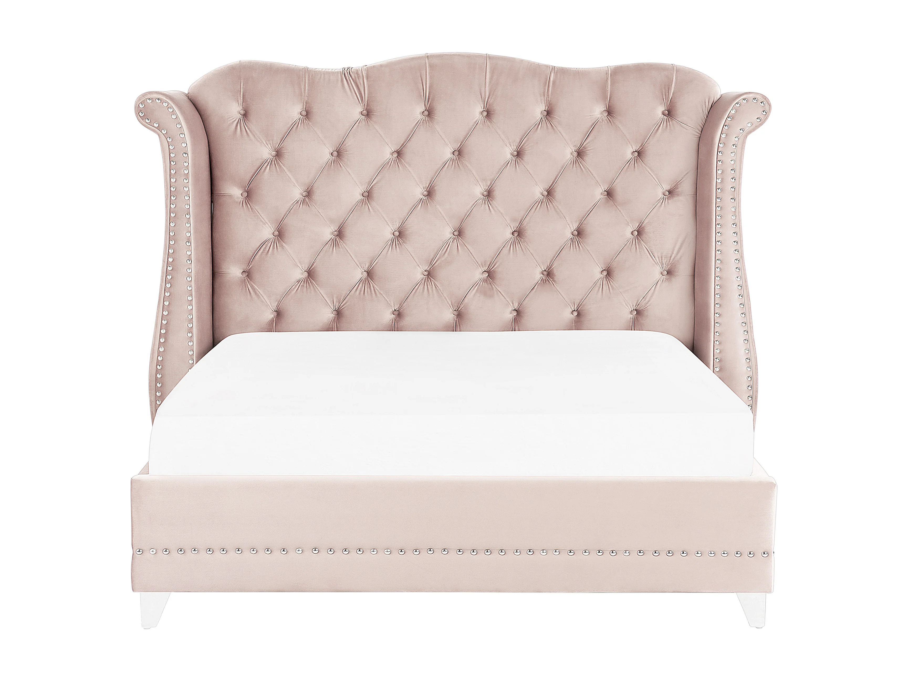 Lit avec sommier Velours AYETTE 180 x 200 cm Rose pastel
