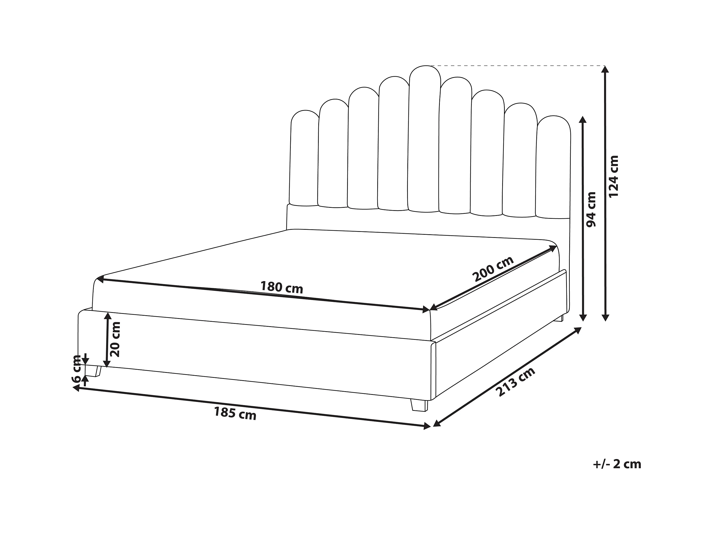 Lit ottoman Velours VINCENNES 180 x 200 cm Blanc cassé