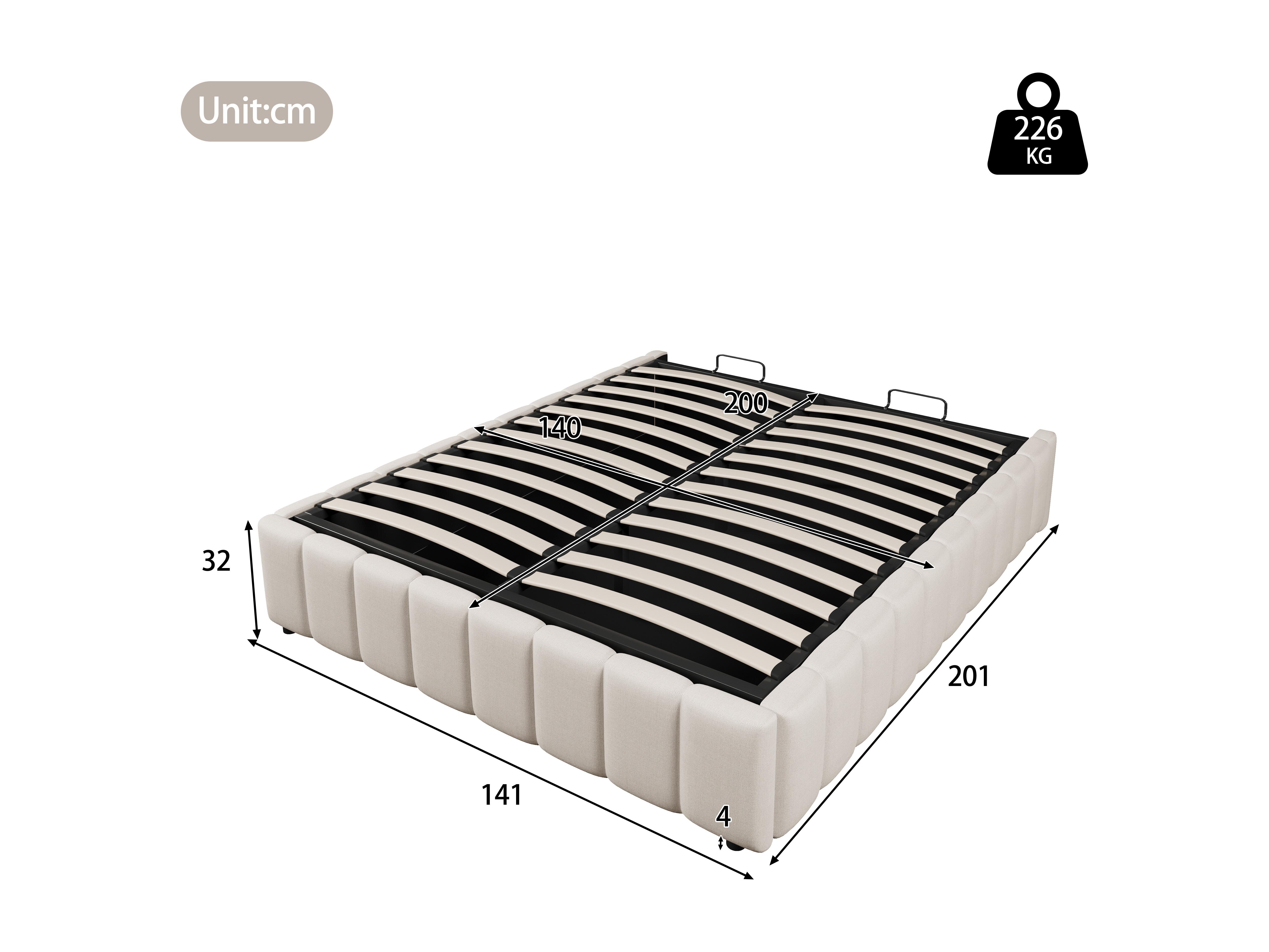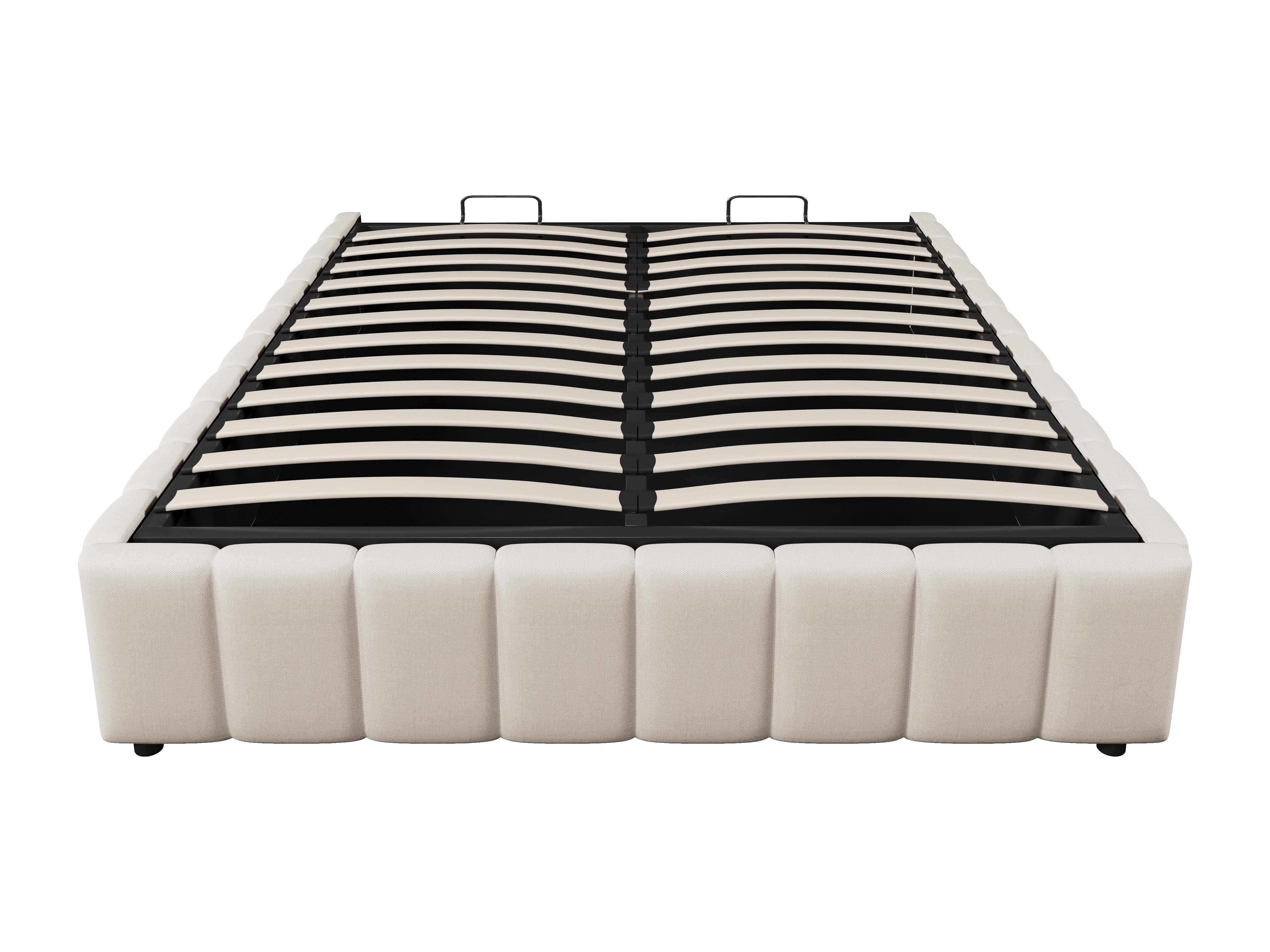 Lit avec stockage hydraulique, 140x200cm, sans tête de lit, lin, beige (201x141x32 cm)