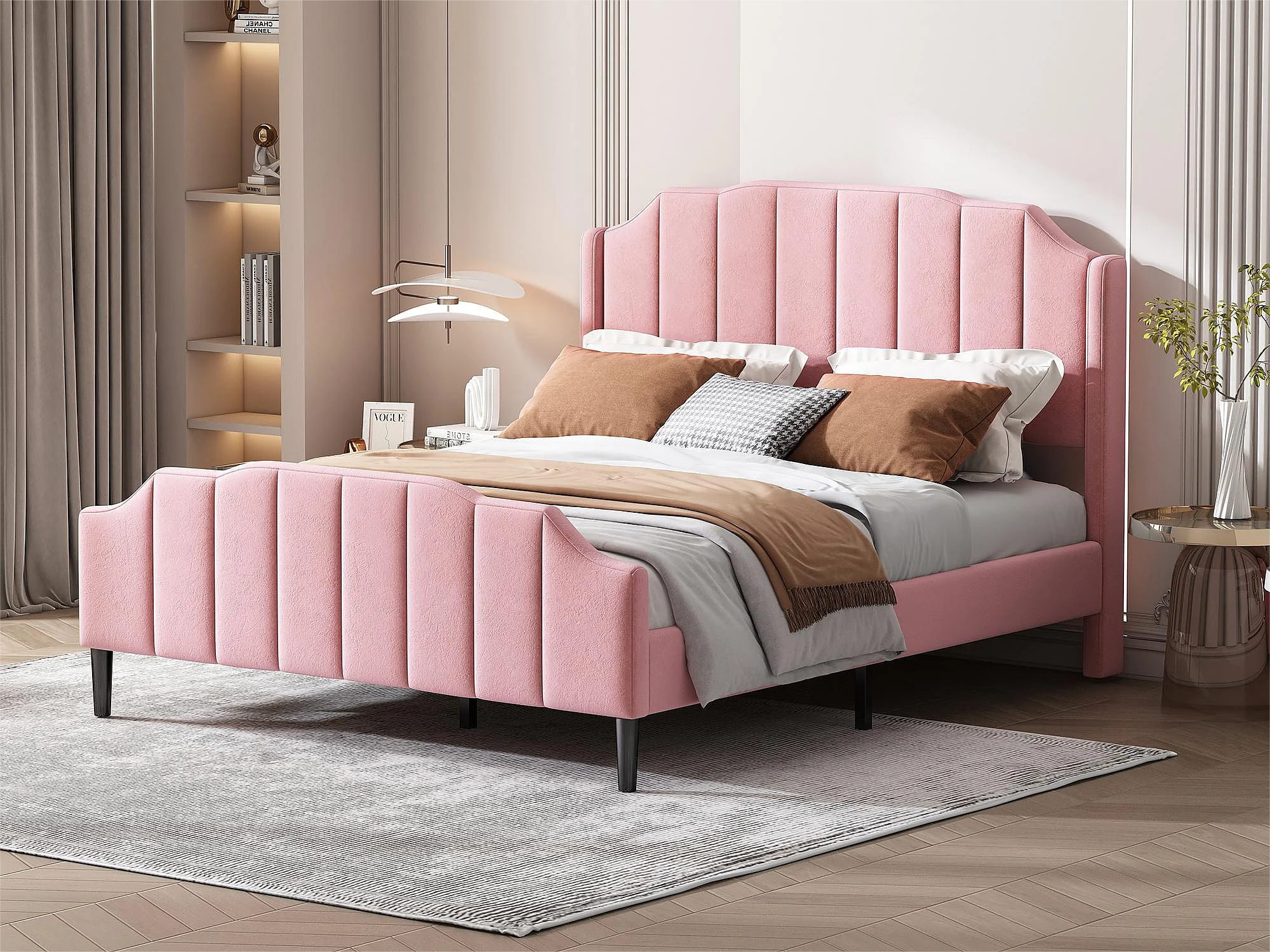 Lit avec tête de lit - 140 x 200 cm - velours - sommier inclus - coloris rose