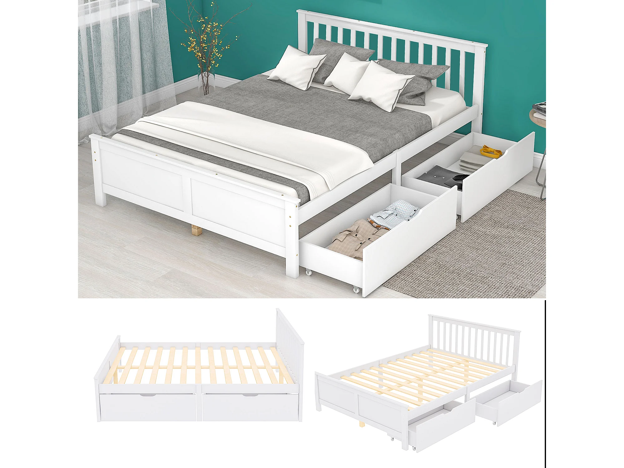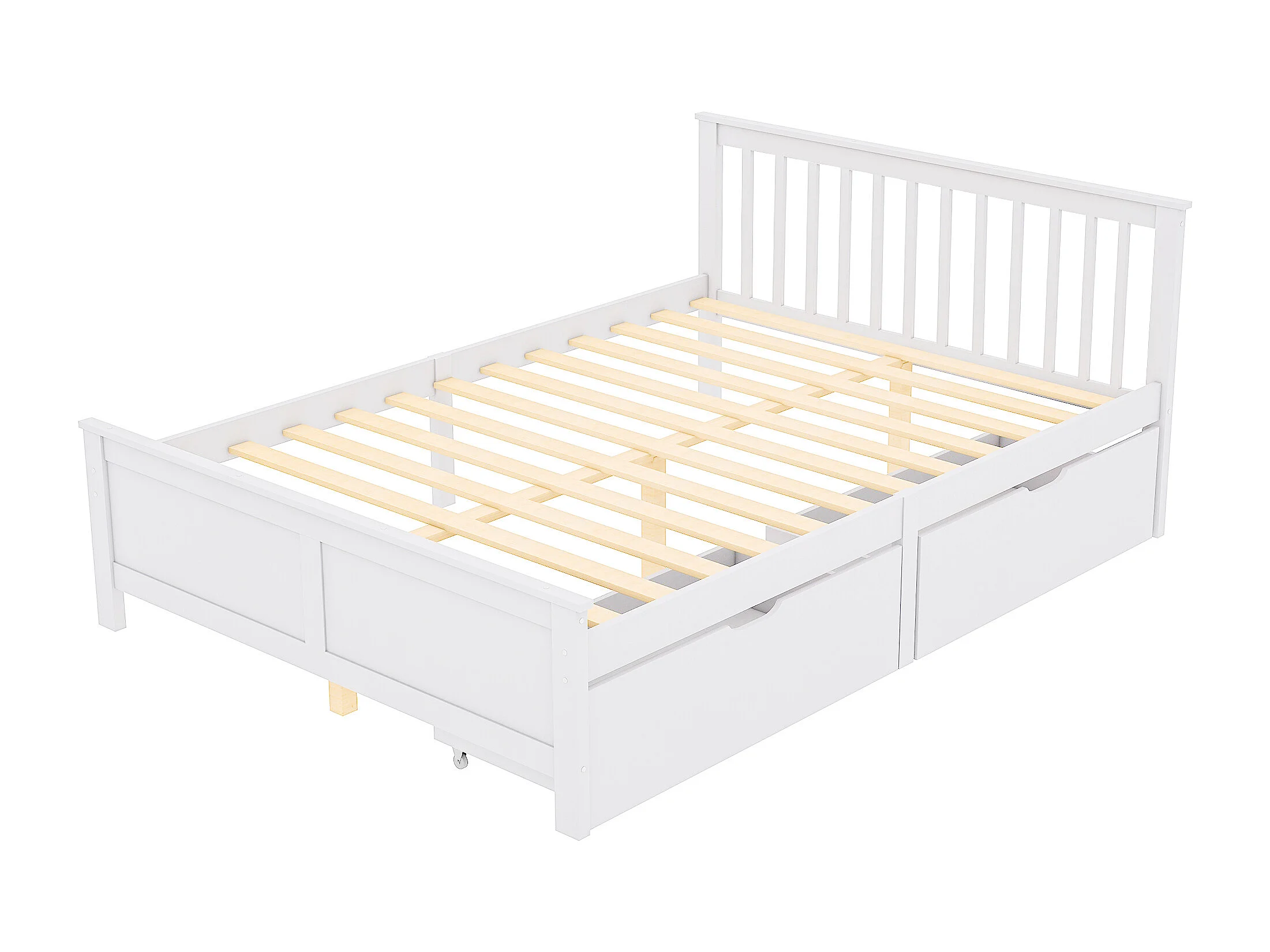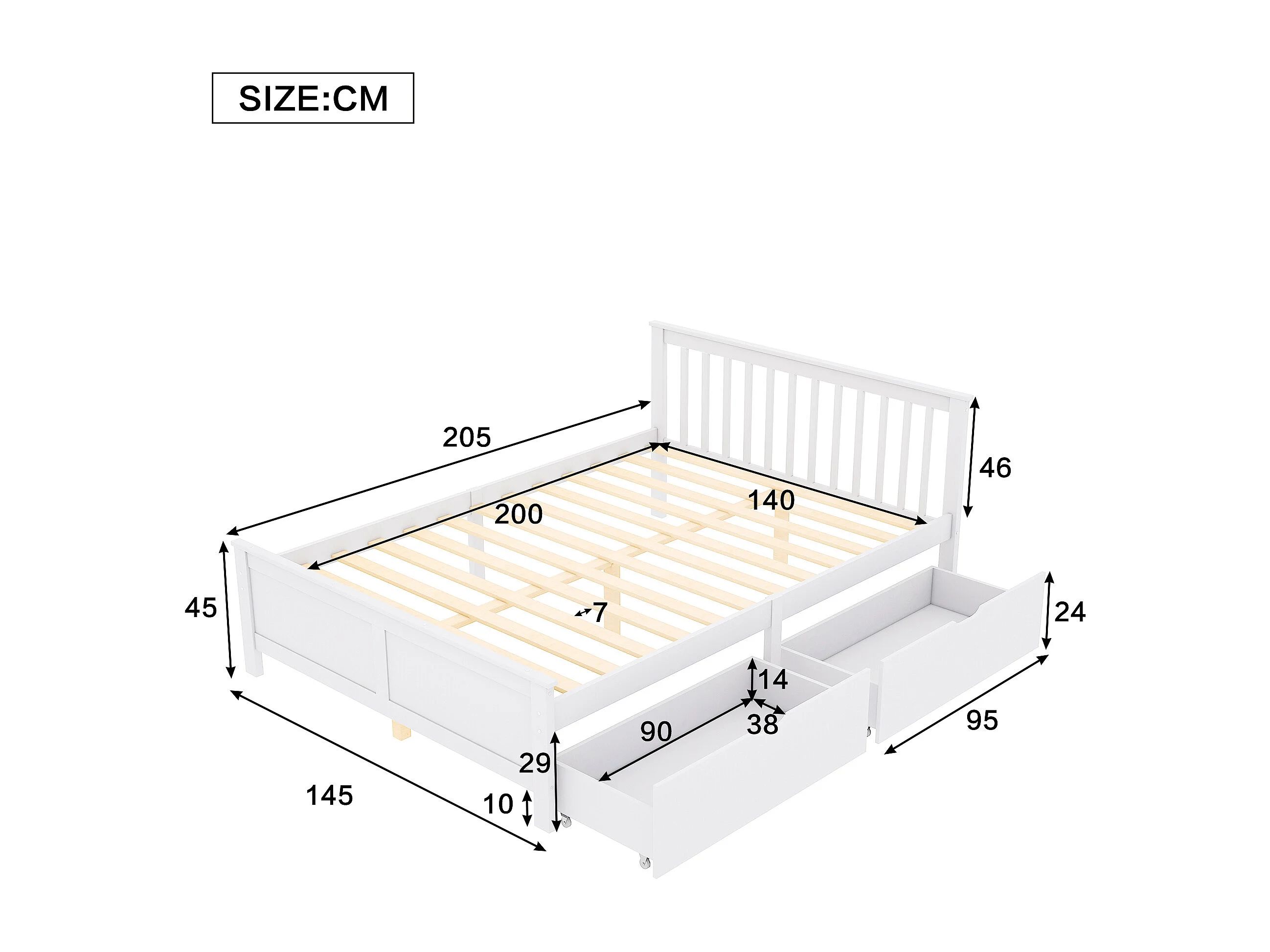 Lit avec tête de lit et tiroirs - 140 x 200 cm - bois massif - coloris: blanc
