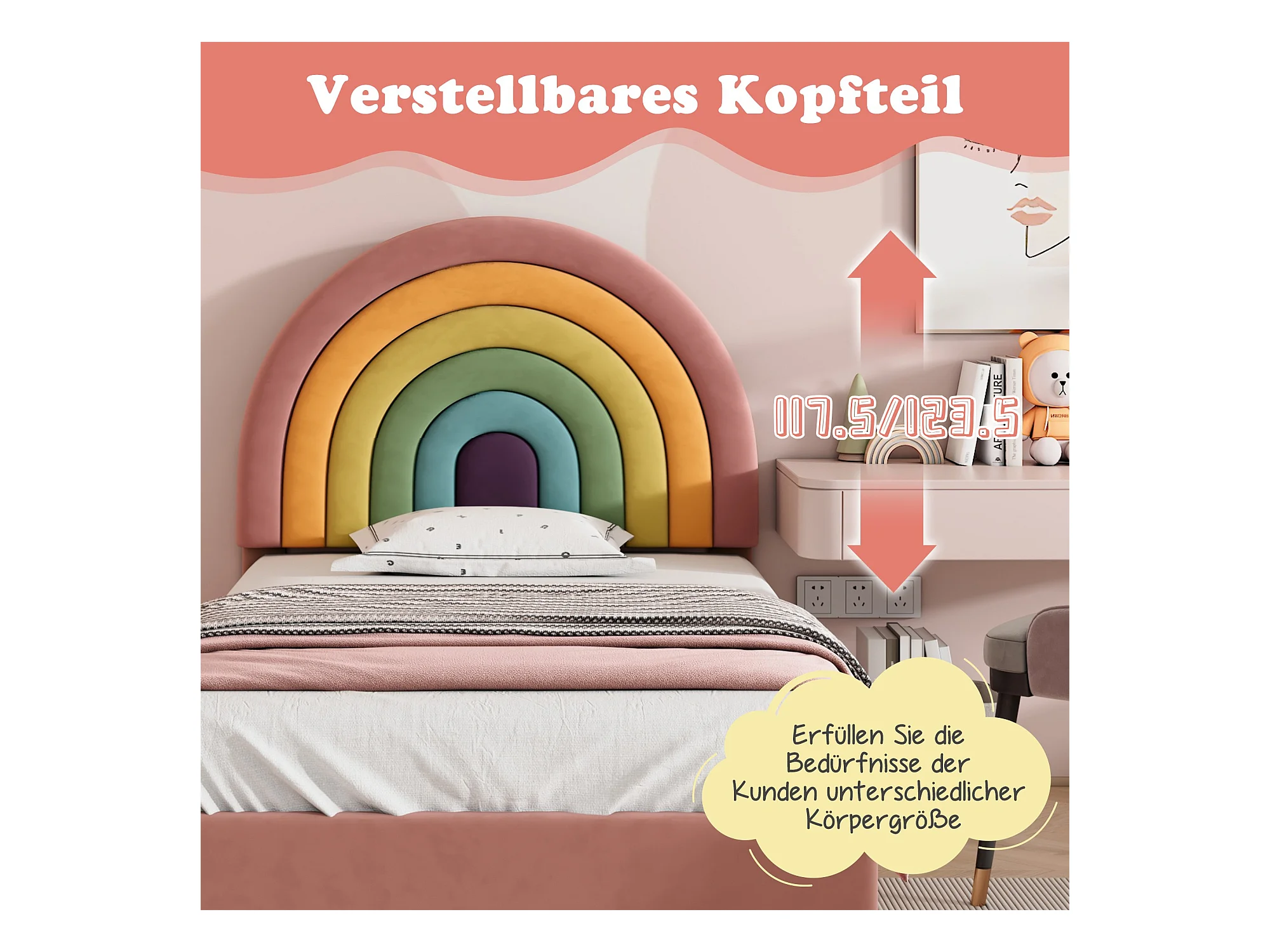 Lit avec tête de lit réglable, 90x200 cm, avec sommier à lattes, design moderne, velours, rose