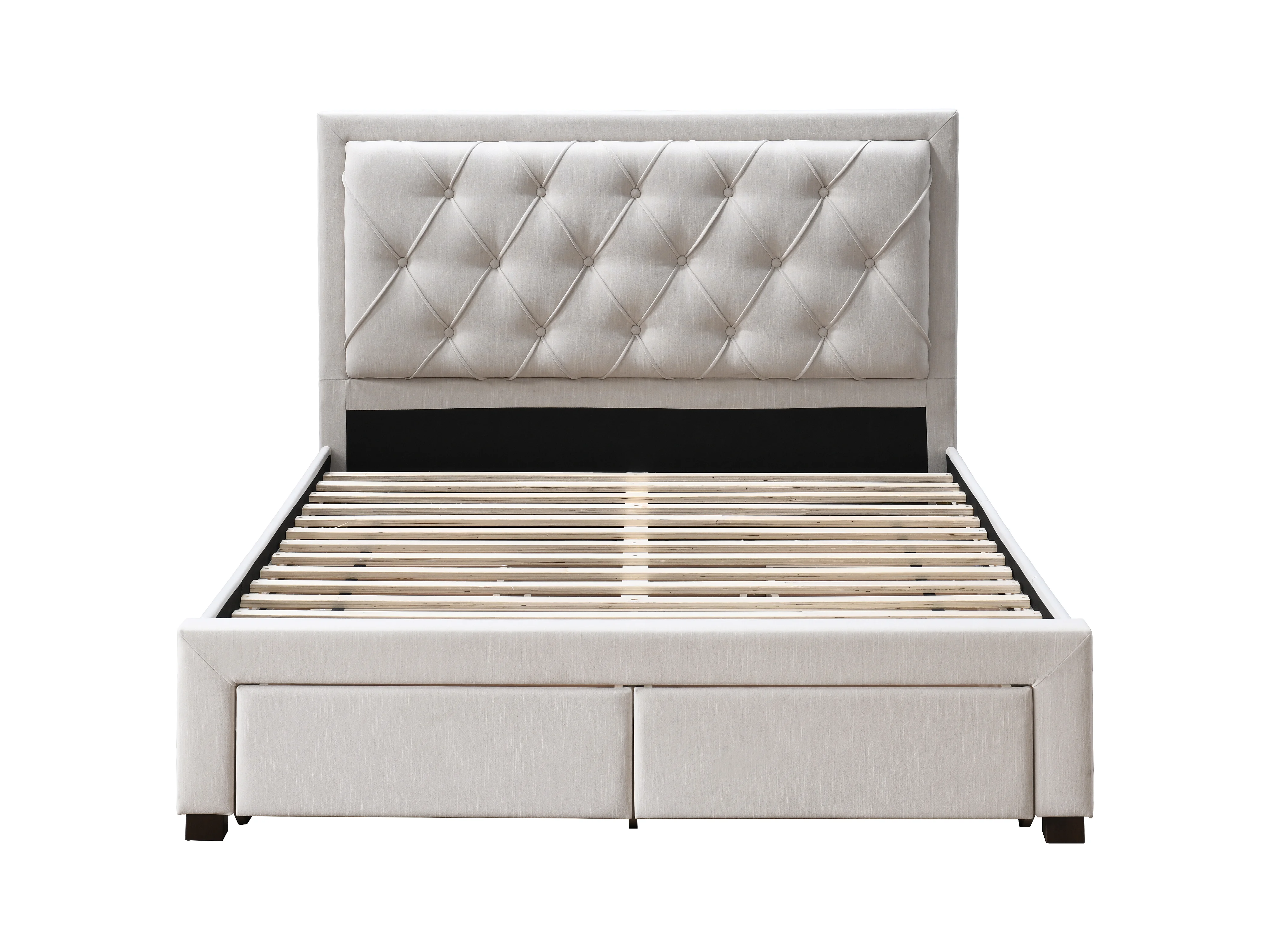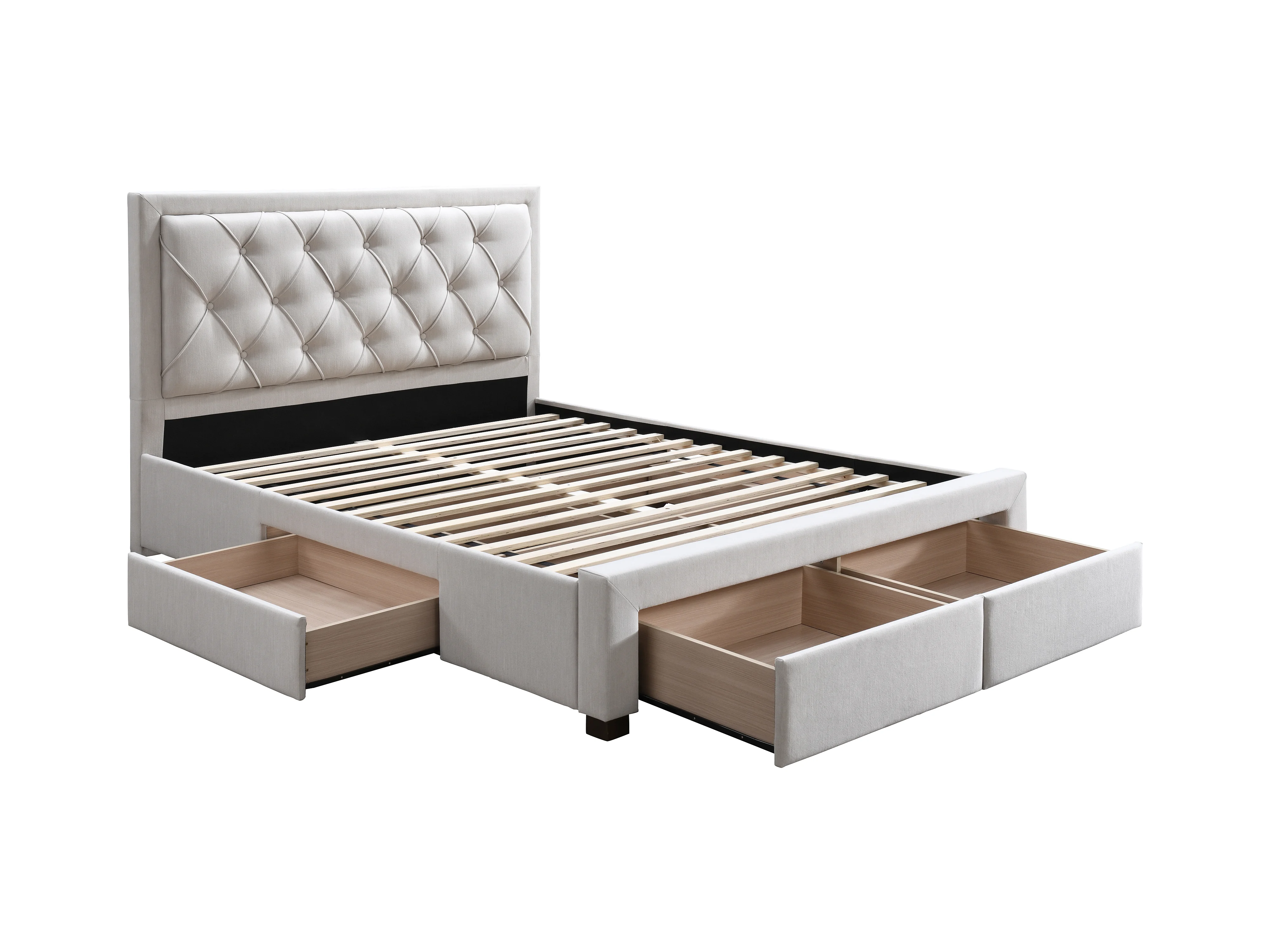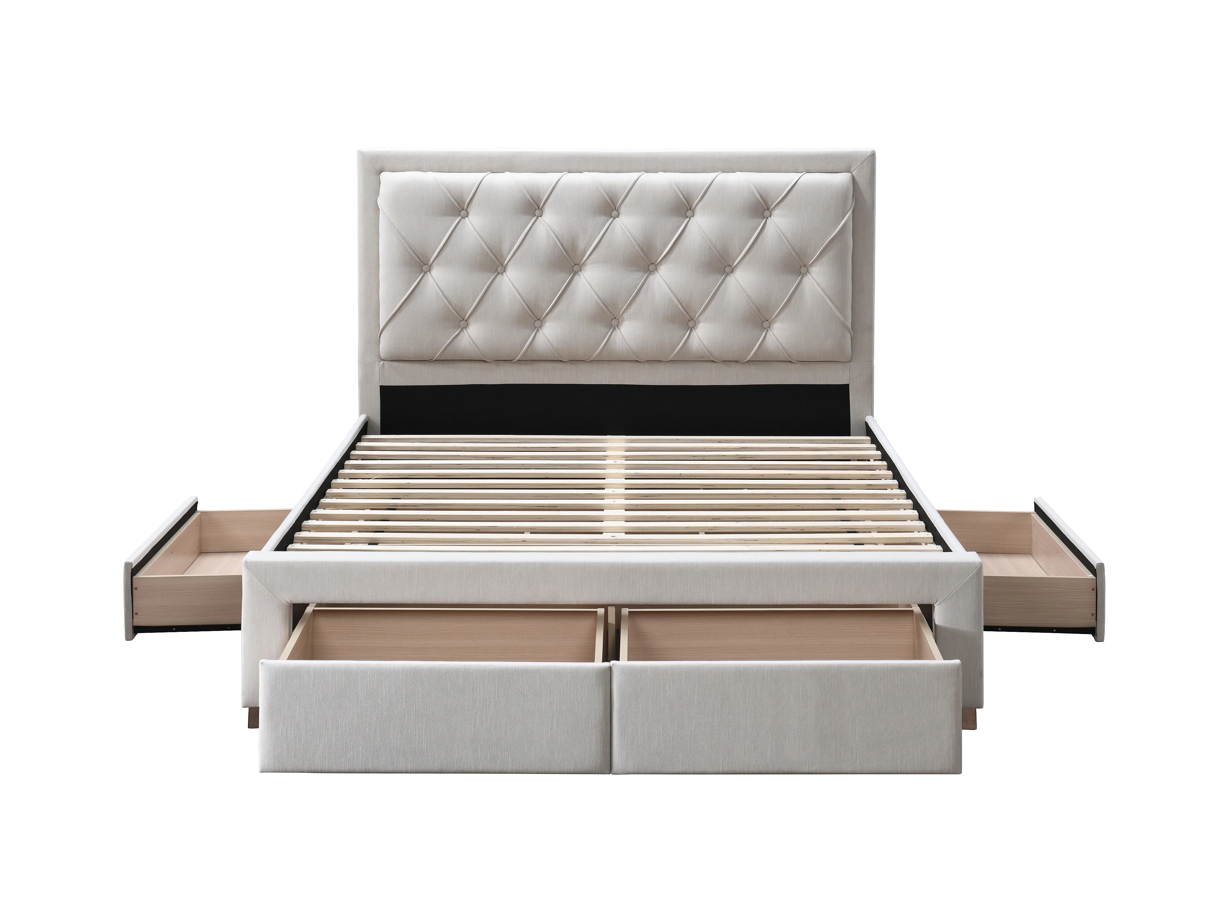 Lit avec tiroirs 180 x 200 cm - Tissu - Beige - LEOPOLD