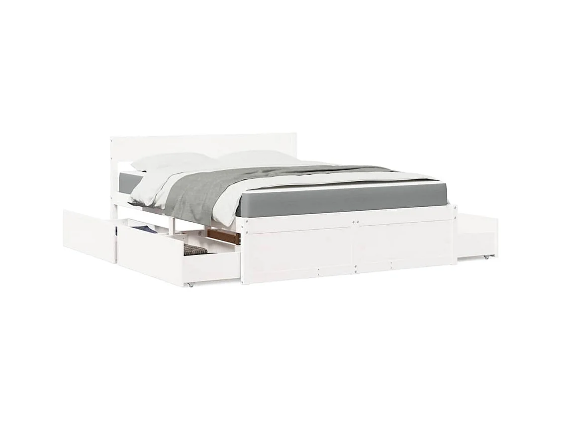 Lit avec tiroirs et matelas blanc 140x200 cm bois massif de pin