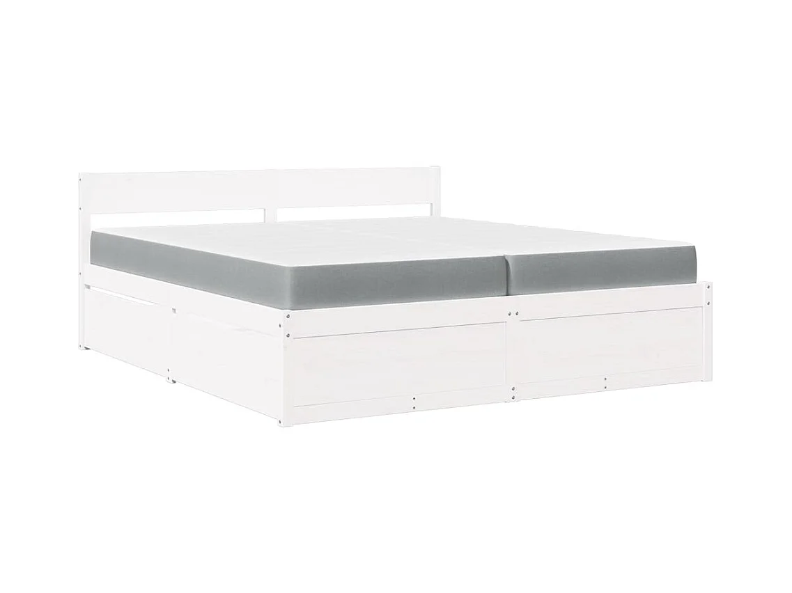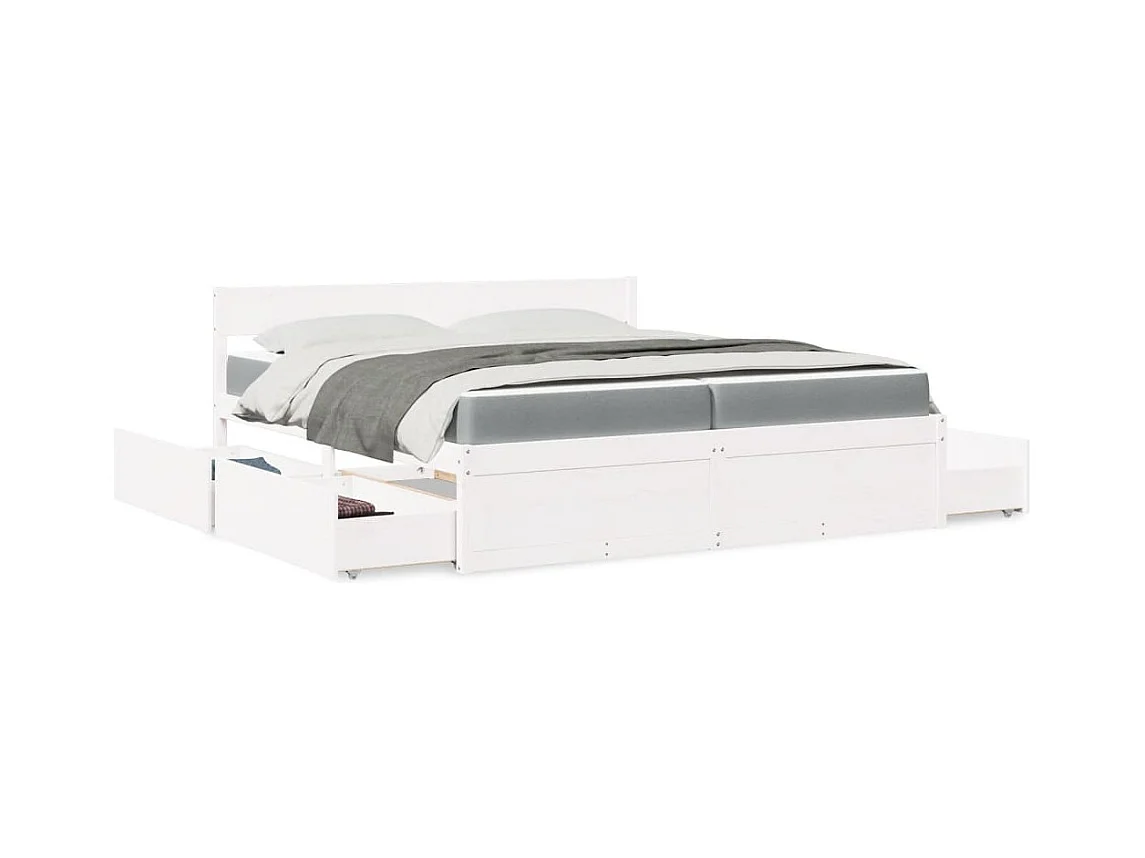 Cadre de lit avec tiroir Blanc 200 x 200 cm Bois massif en pin