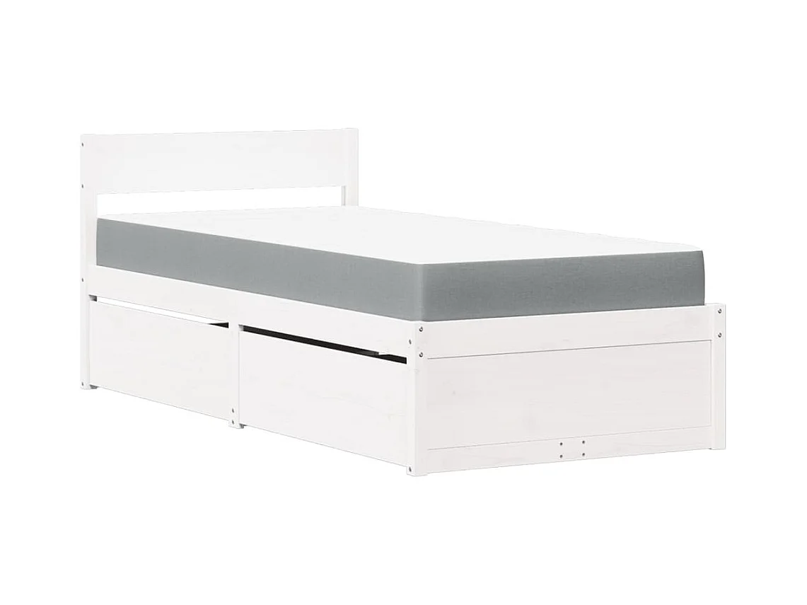 Lit avec tiroirs + matelas blanc 90x190 cm bois massif de pin FR25132