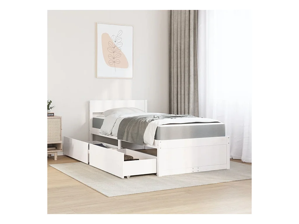 Lit simple avec tiroirs blanc 90x190 cm bois pin massif FR54359