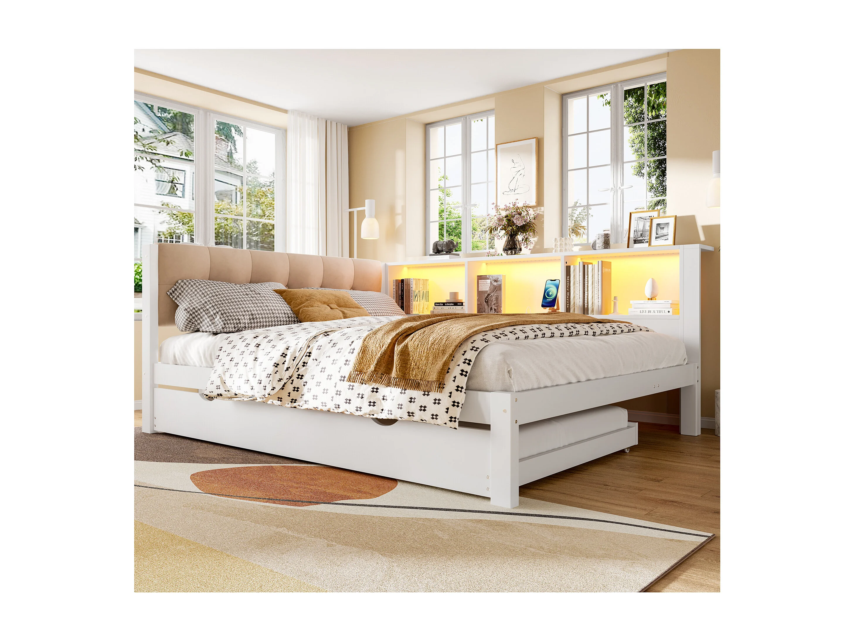Lit banquette 140x200 cm Lit enfant avec lit gigogne, éclairage LED et prise USB - blanc (sans matelas)
