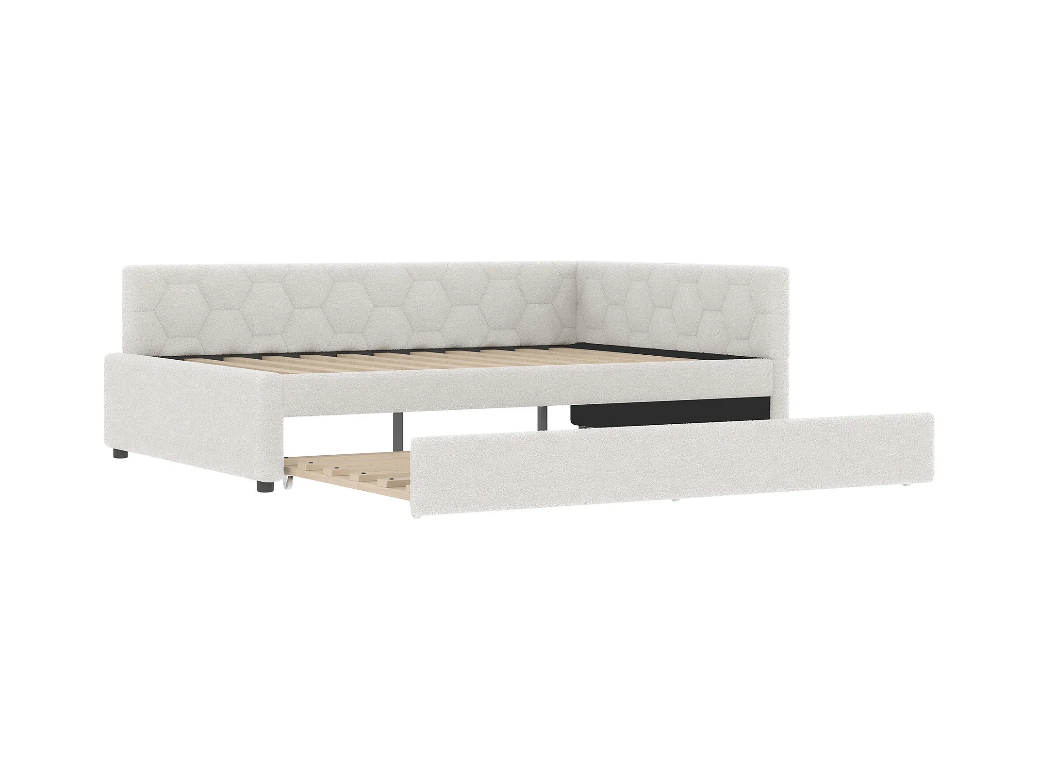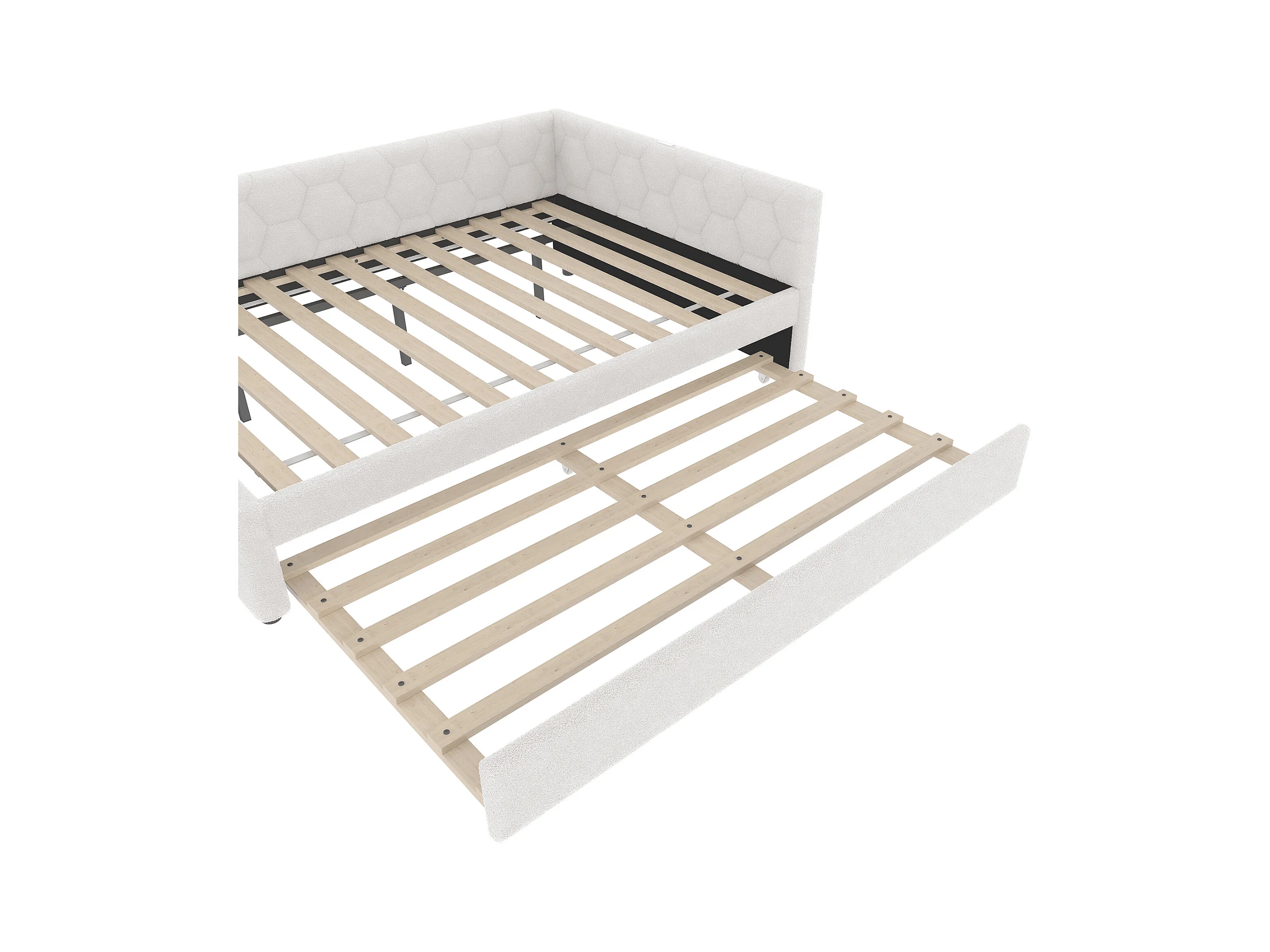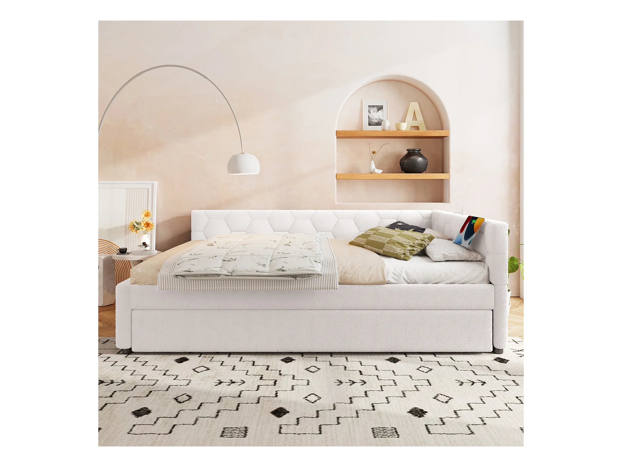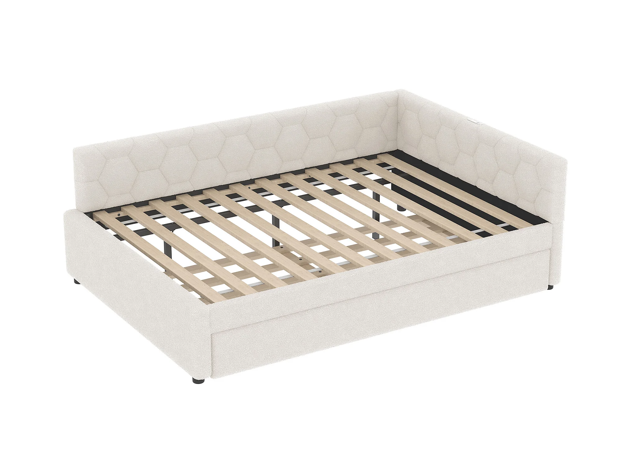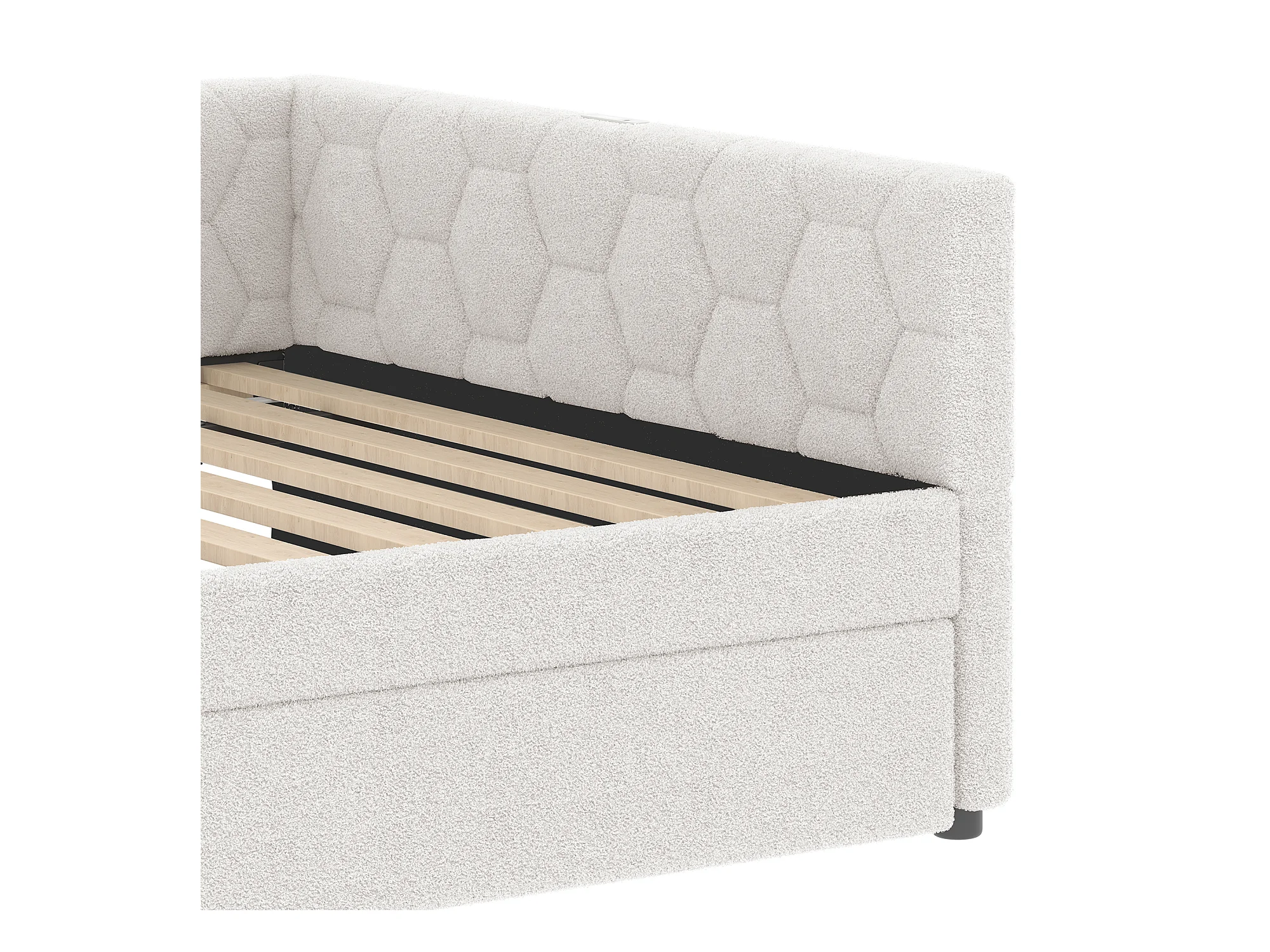 Lit banquette 140x200 cm, peluche blanche, lit gigogne avec lampe de chevet et USB - sans matelas