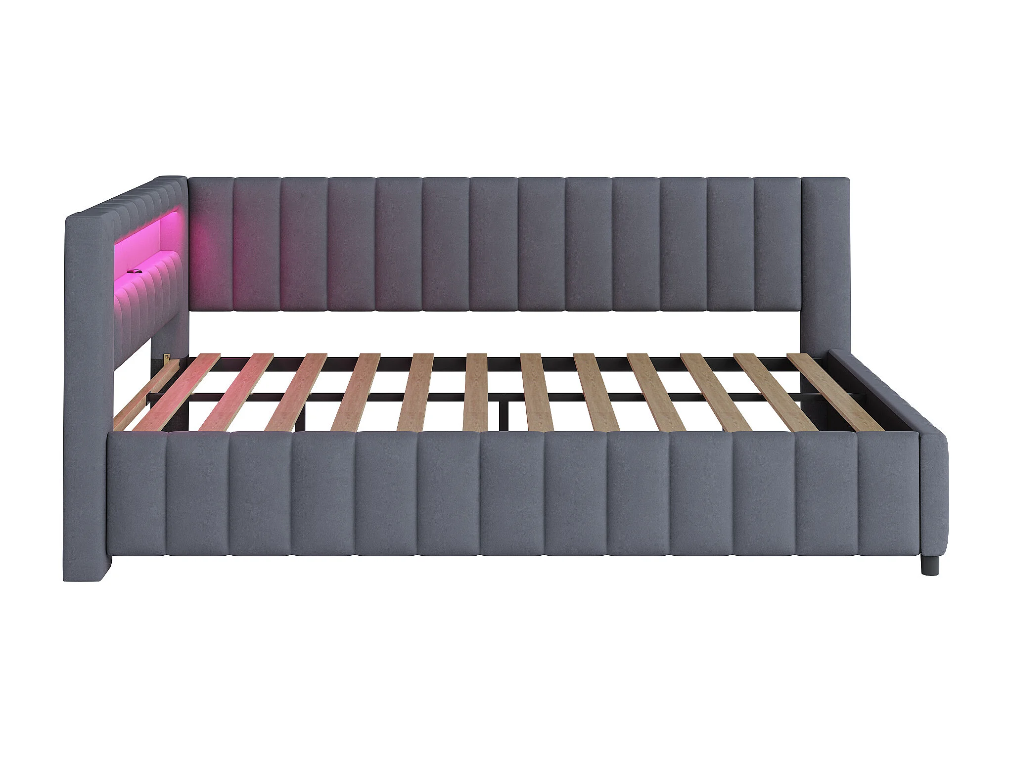 Lit banquette 140x200 cm en lin - avec LED et ports de recharge - Gris