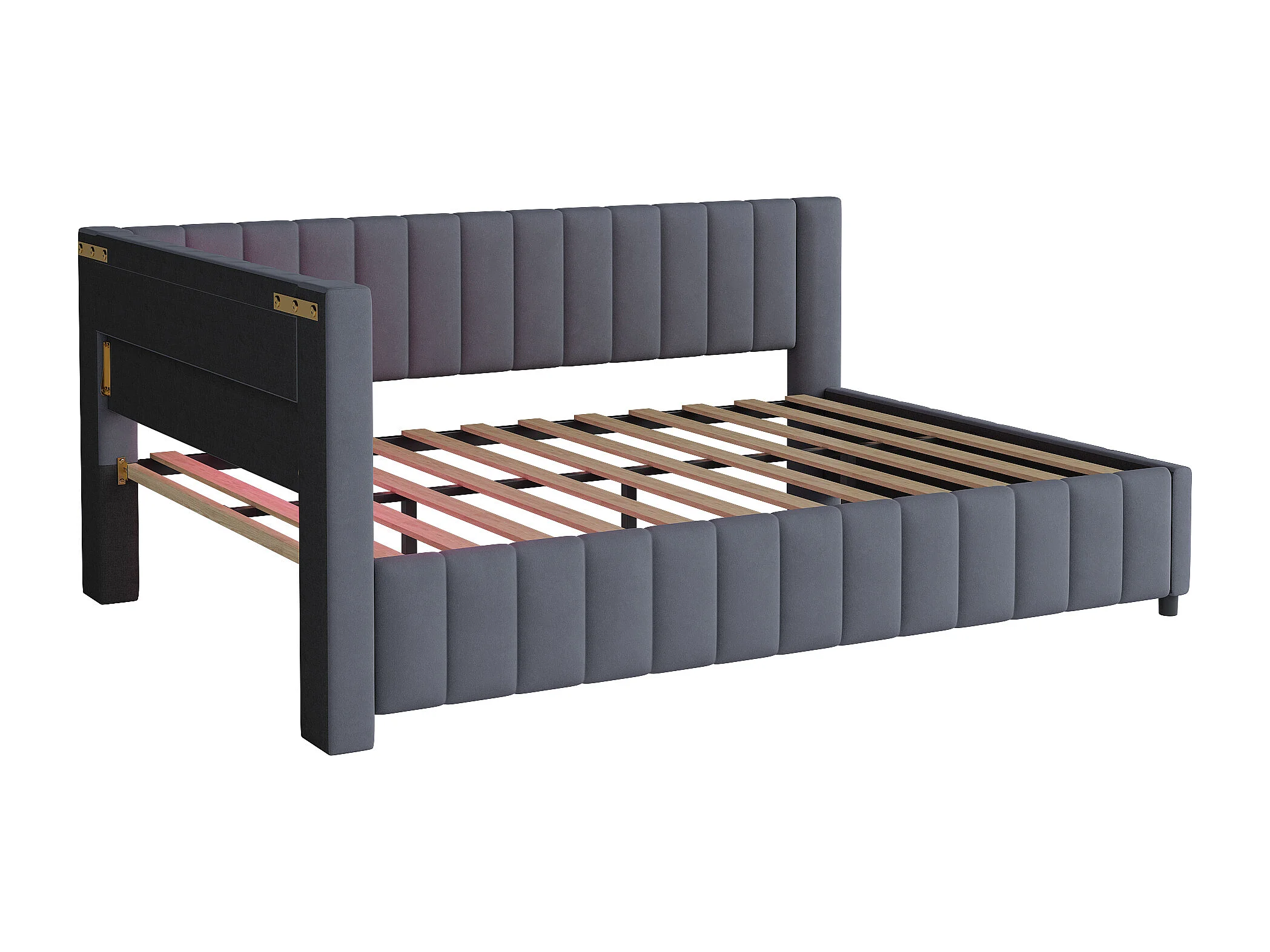 Lit gigogne capitonné 140x200cm, canapé-lit, sommier à lattes, lit adulte, velours, Gris