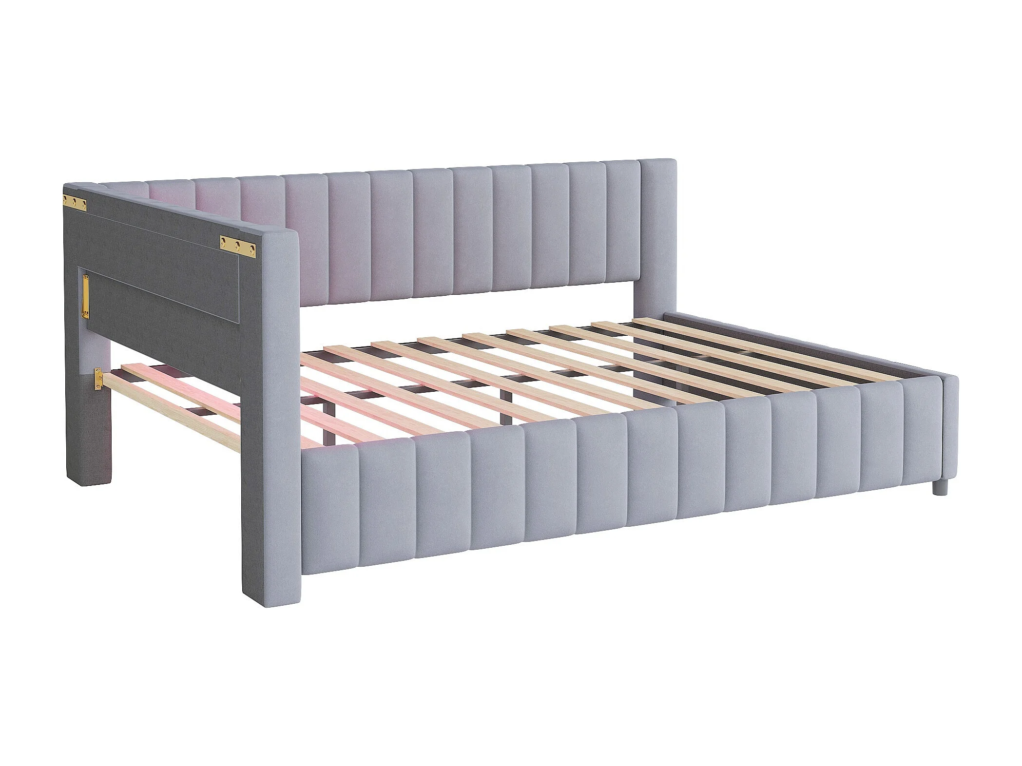 Canapé-lit rembourré 140x200cm - avec sommier à lattes - tissu velours - Gris (matelas non inclus)