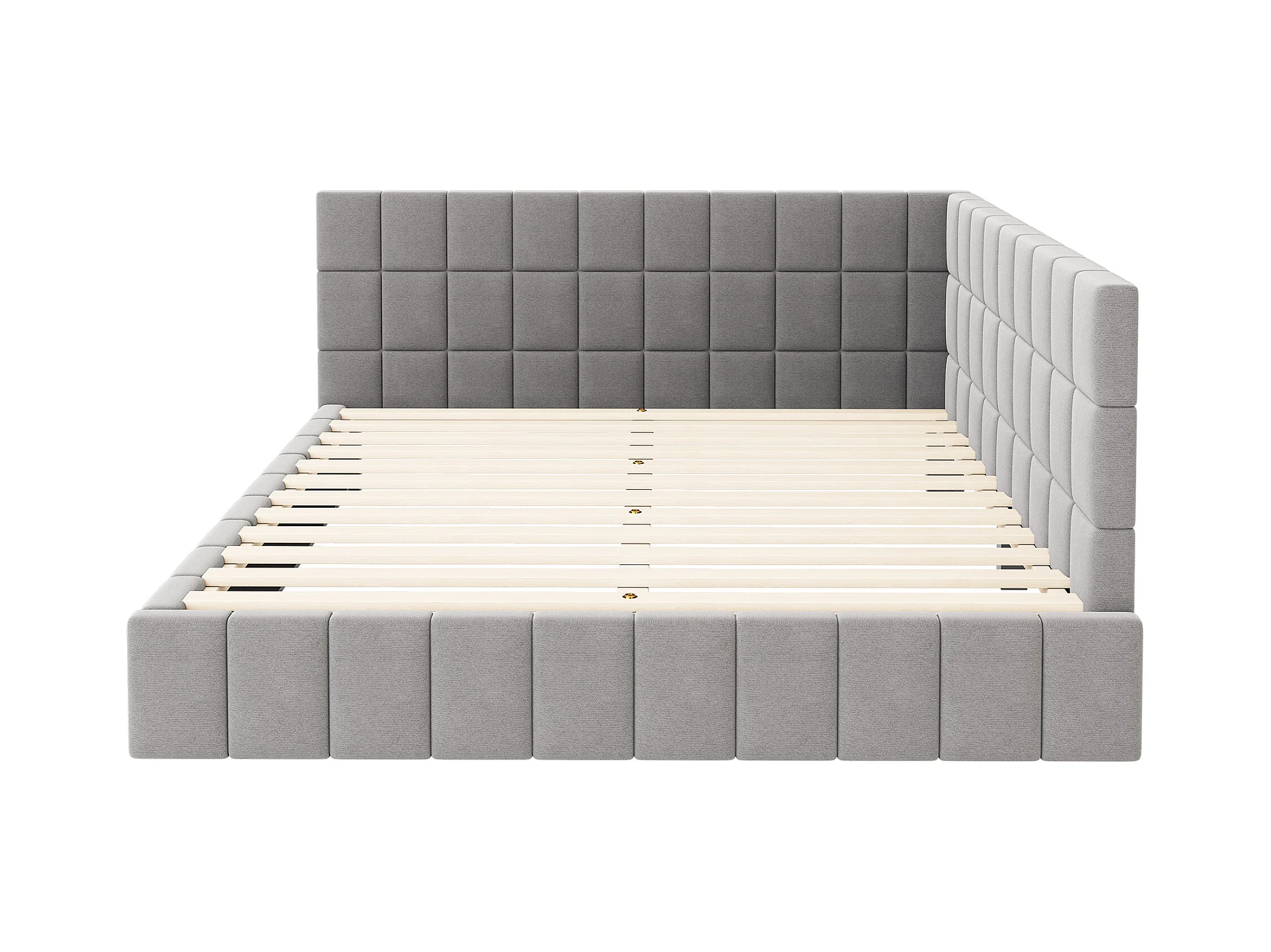 Lit adulte 160x200cm en velours avec clôture et sommier à lattes - Gris