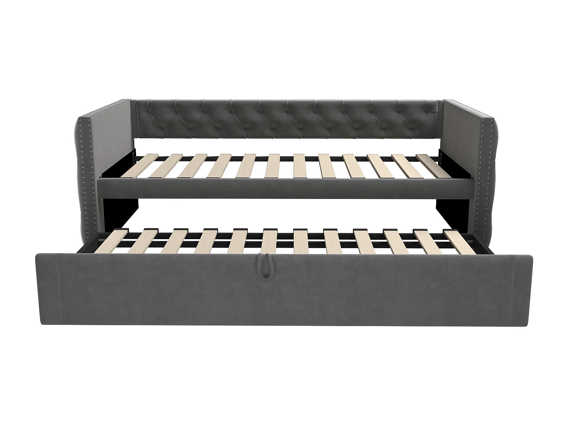 Lit banquette 90x200 cm - Lit gigogne avec sommier à lattes - velours gris - sans matelas