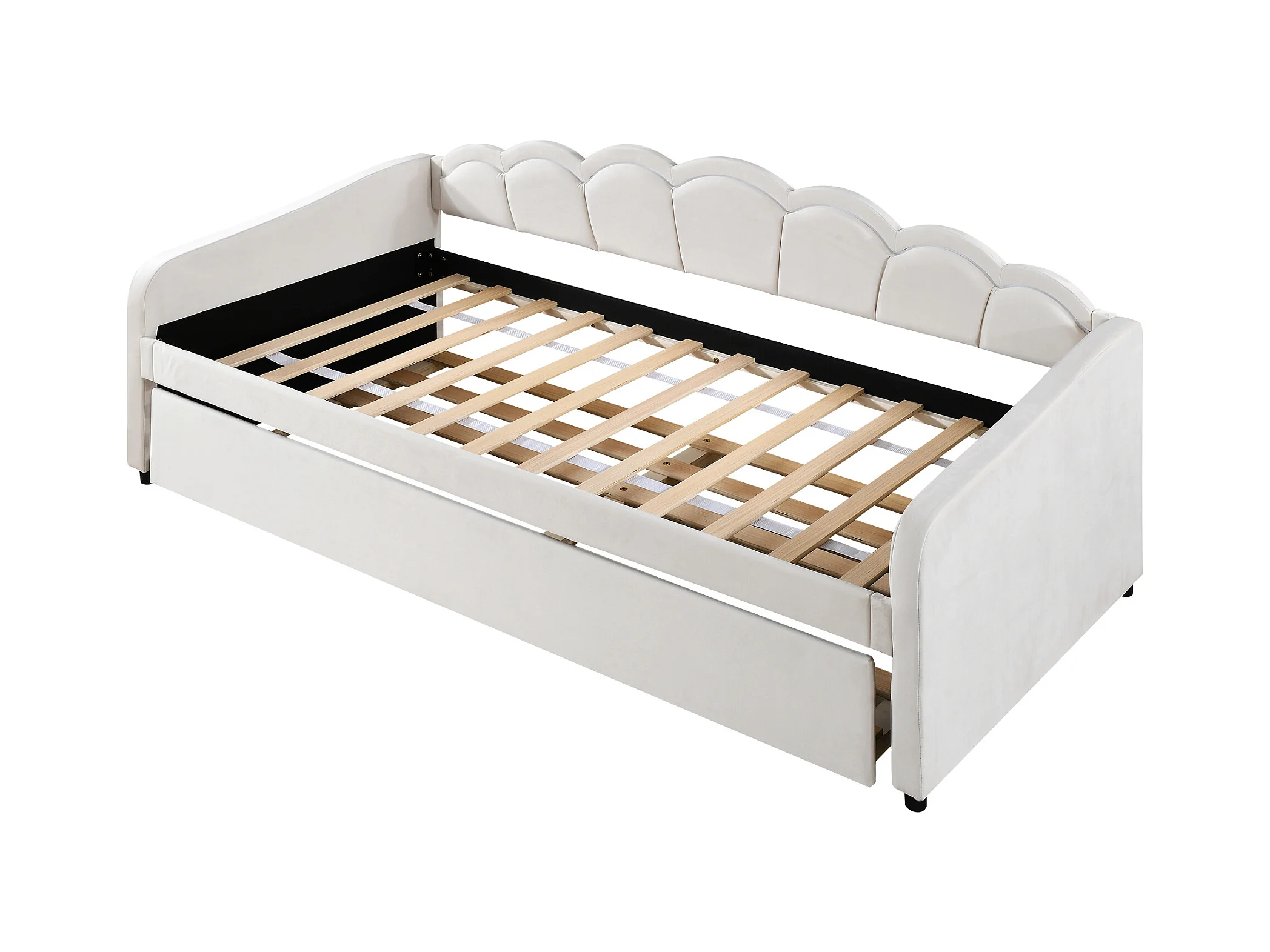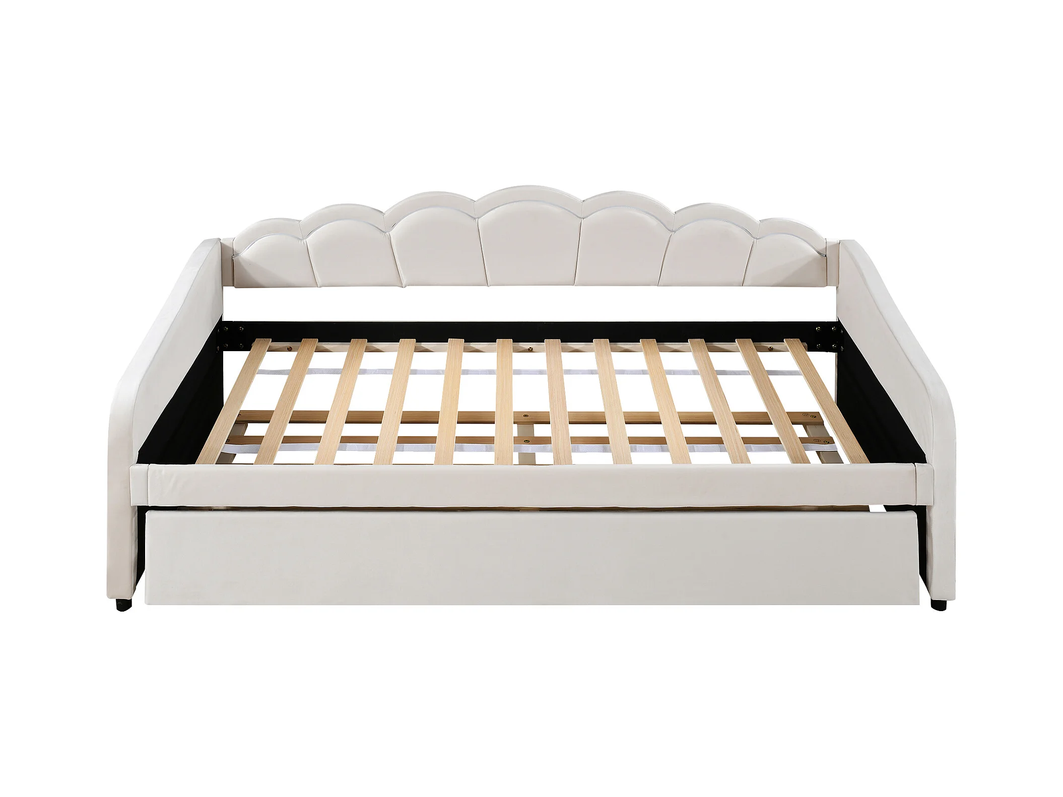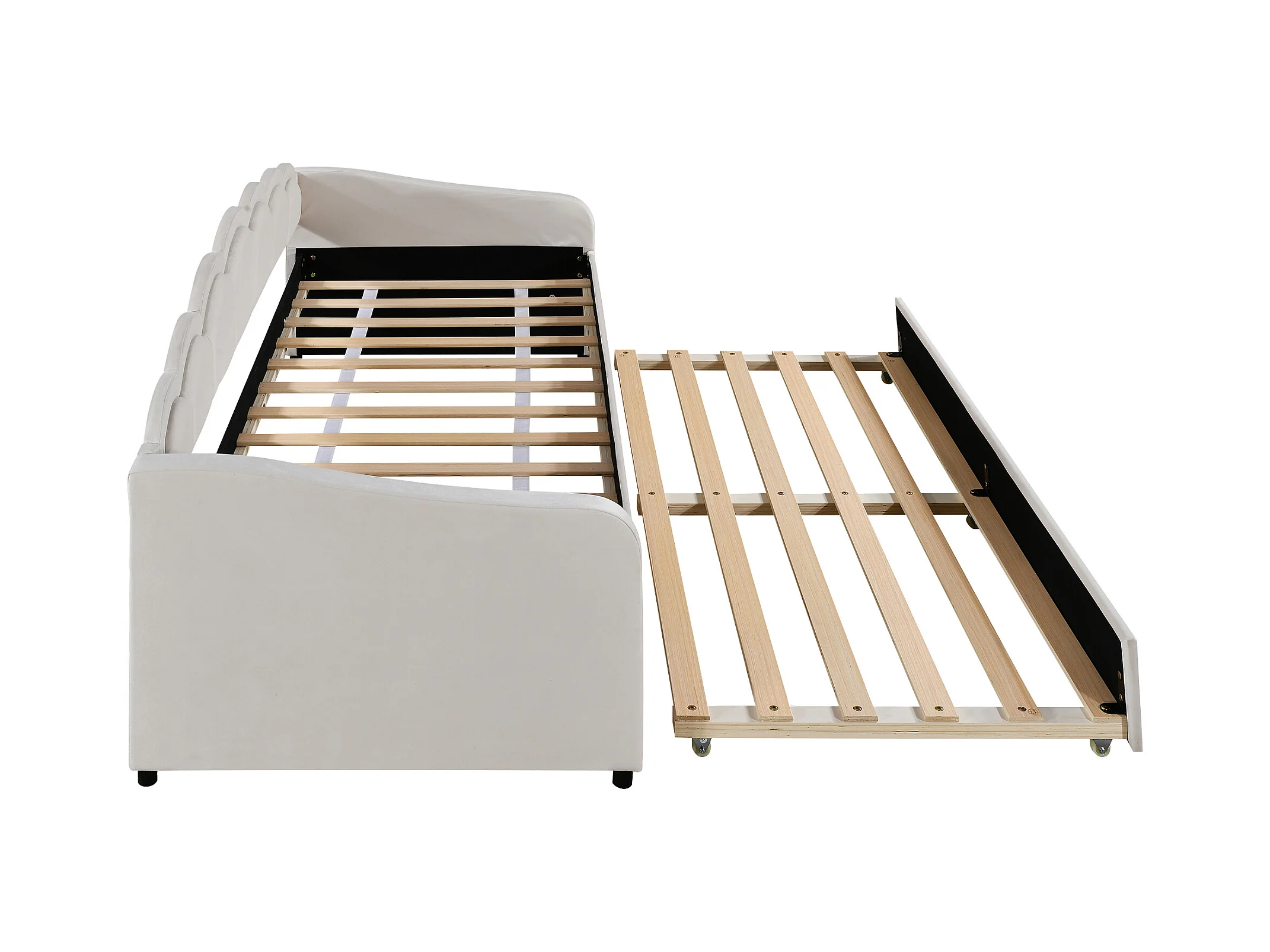 Lit banquette 90x200 cm avec lit gigogne et éclairage LED, velours beige - sans matelas