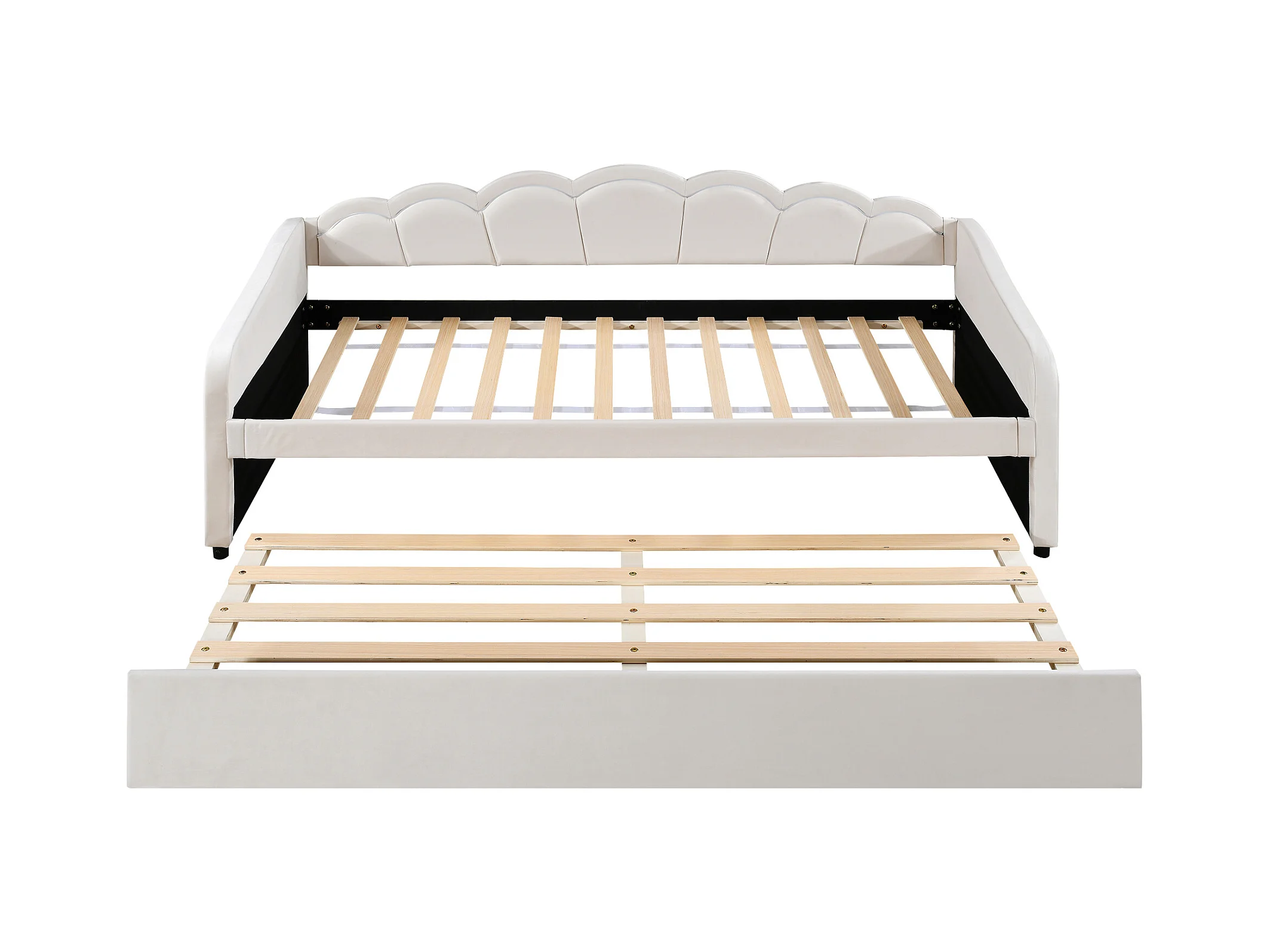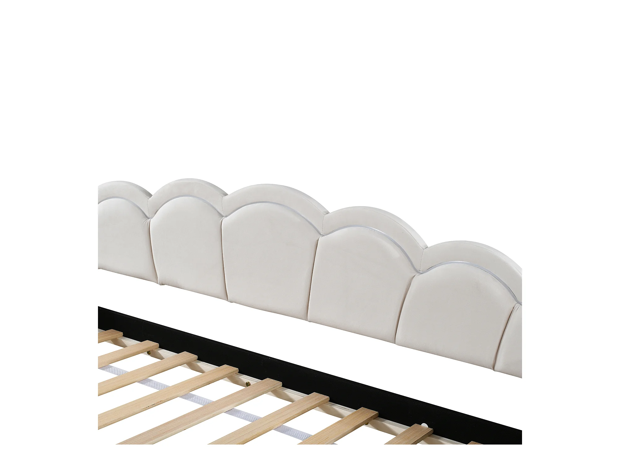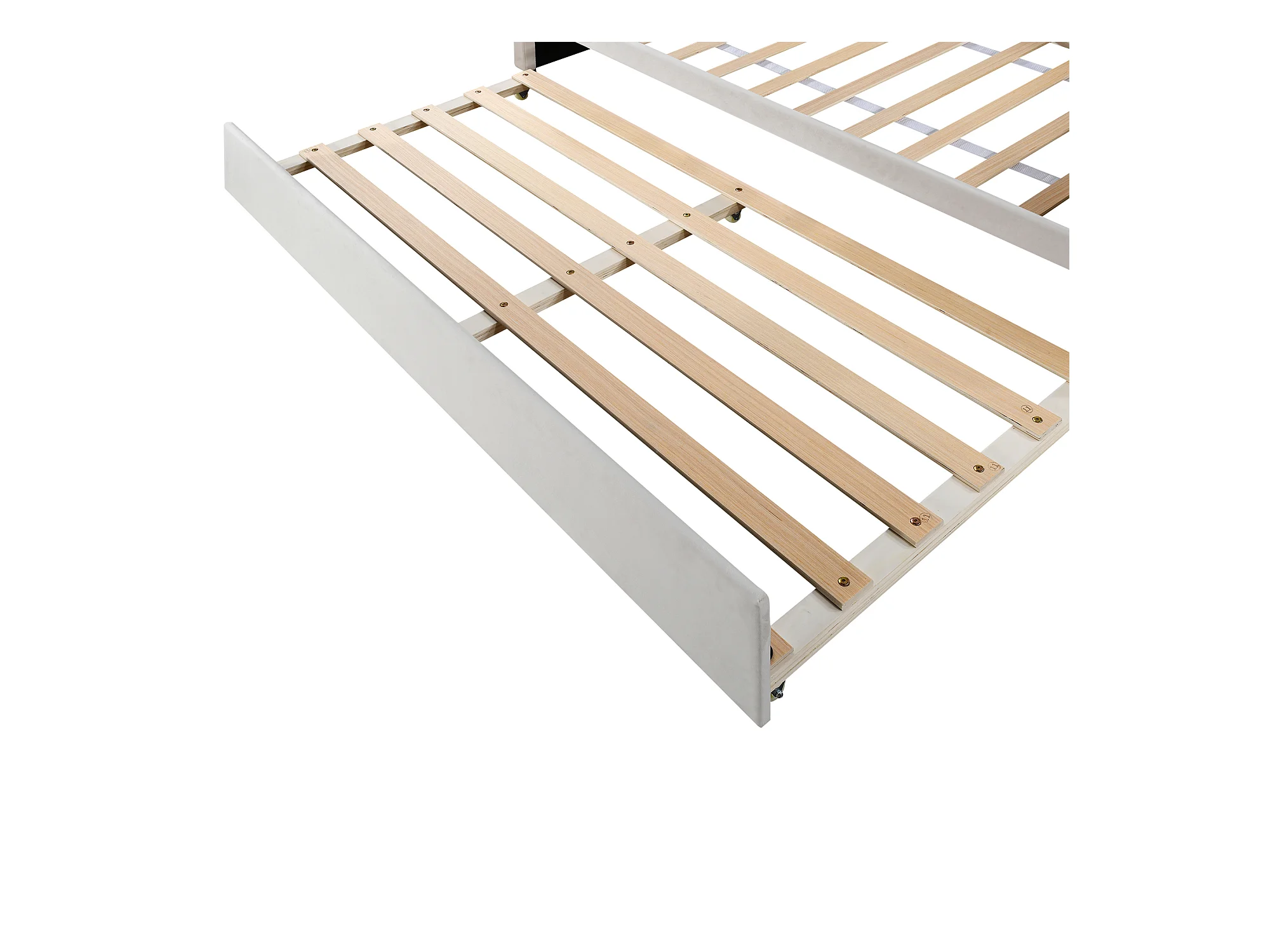 Lit banquette 90x200 cm avec lit gigogne et éclairage LED, velours beige - sans matelas